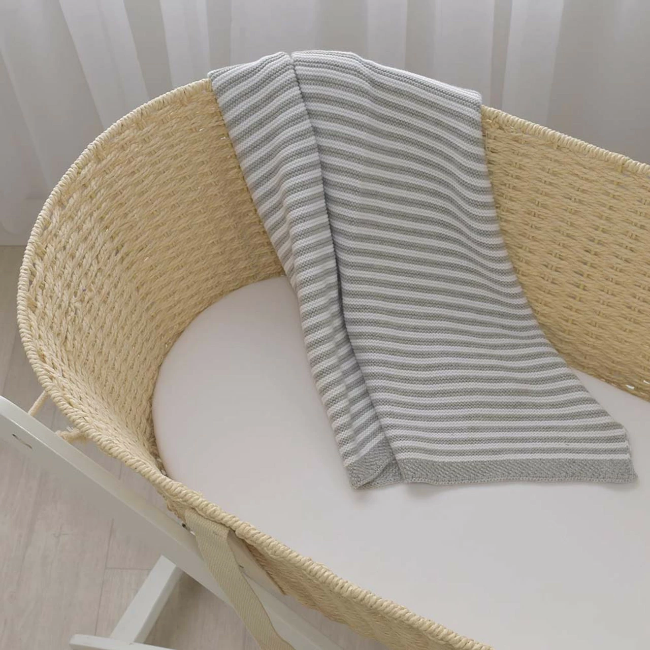 Crafted from soft and breathable 100% cotton jersey these Moses basket /Pram bassinet sheets are suitable all year round. Perfectly sized to fit Moses baskets or pram bassinets, they feature fully elasticated sides for a secure fit.