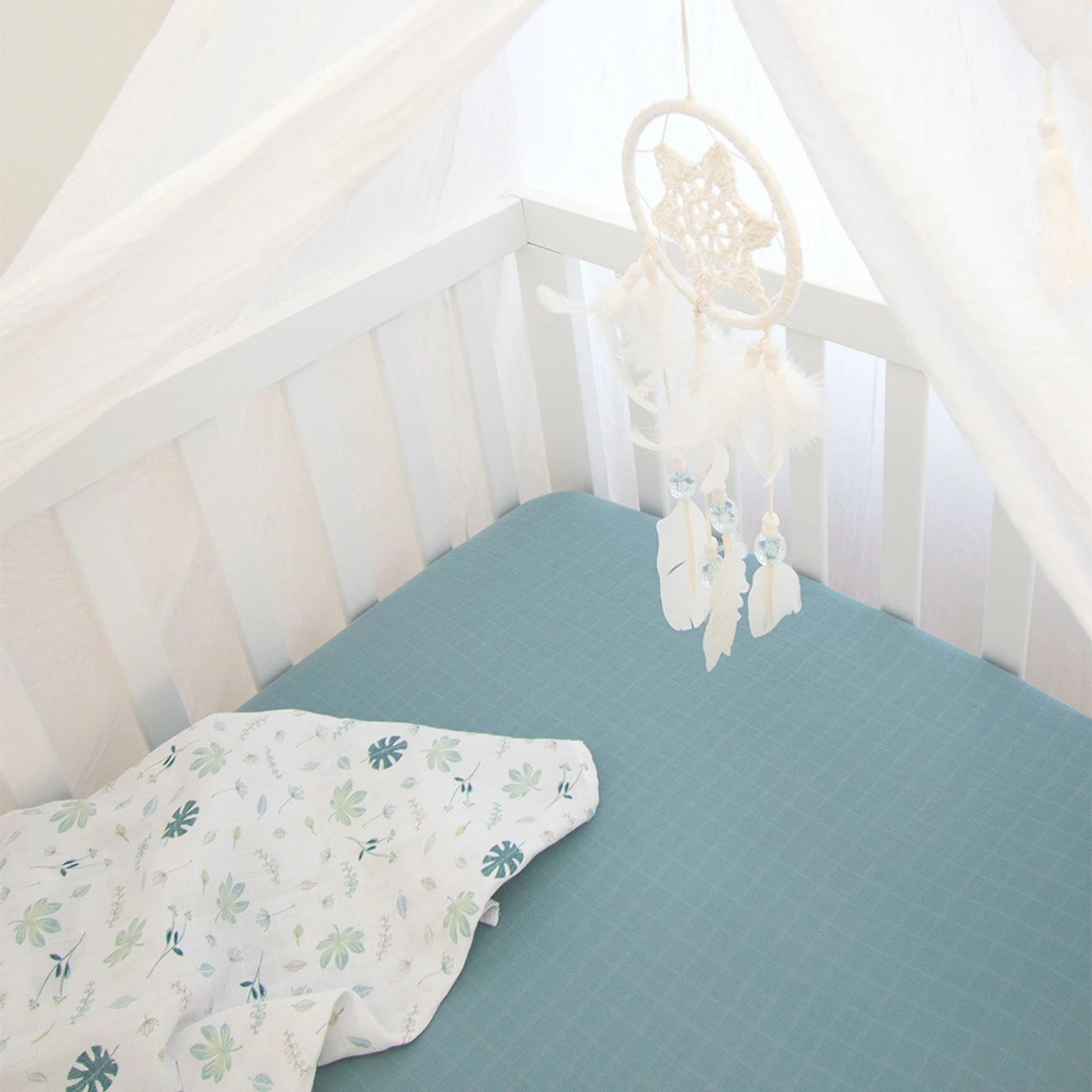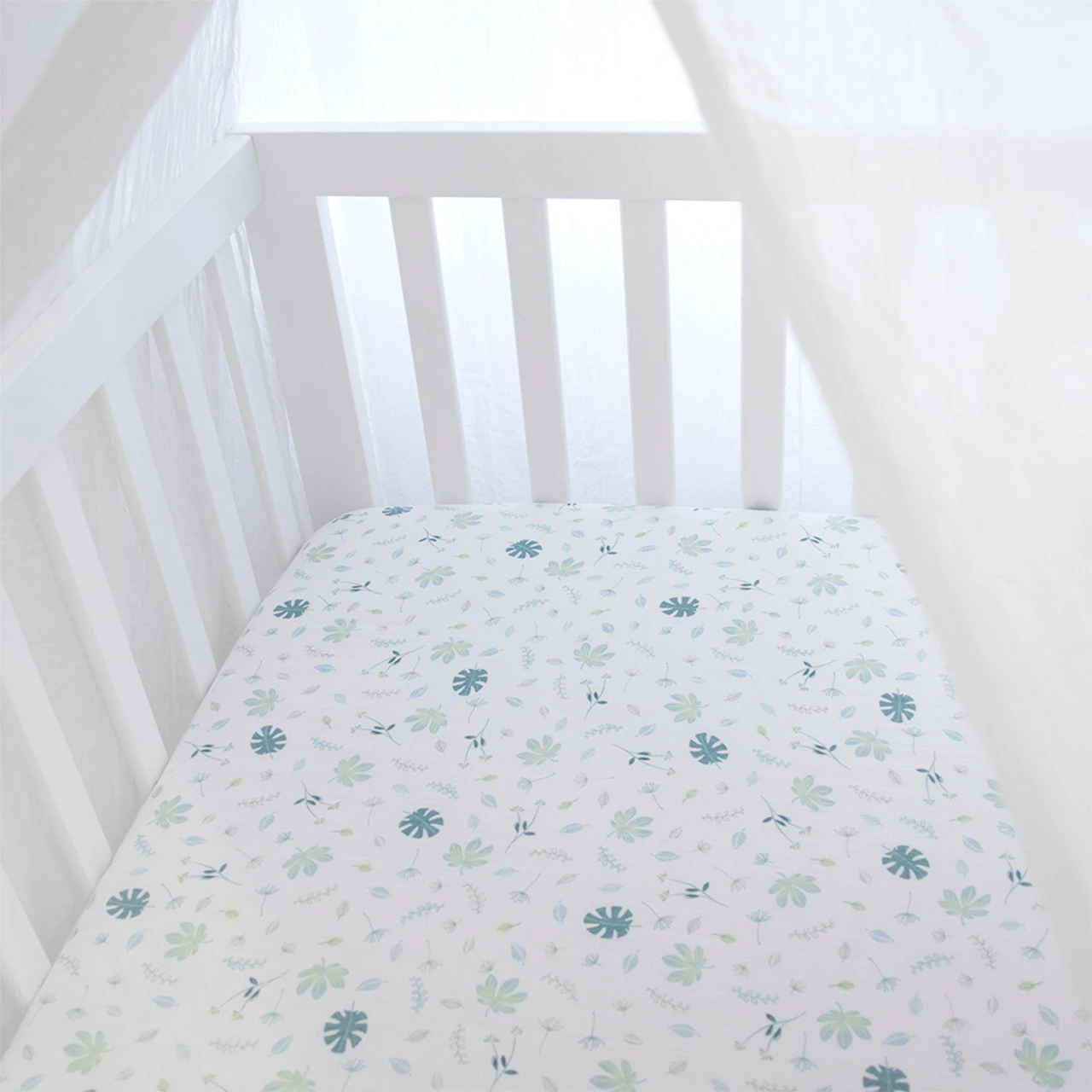 Add a touch of luxury to your baby’s nursery with this organic cotton fitted sheet set. Crafted from 2 layers of 100% organic percale cotton, these soft and breathable muslin sheets feature fully elasticated sides for a secure fit. Match back with other items from the Living Textiles Organic Banana Leaf Collection to create the nursery of your dreams.
