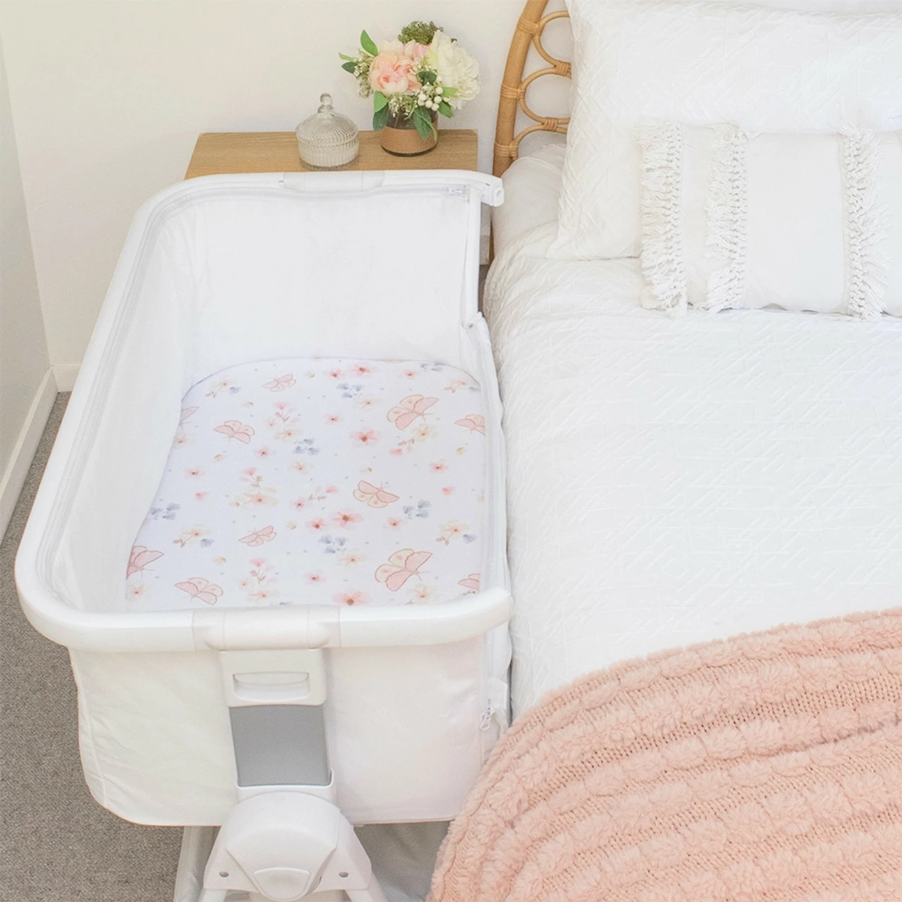 Add a touch of luxury to your baby’s nursery with this 100% cotton bedside bassinet fitted sheet set. Crafted from soft and breathable premium 100% cotton jersey these sheets lay smooth beneath your baby and are perfect all year round. Featuring 360º premum elastic with extra streach for a secure fit, these sheets are also machine washable and tumble dry safe.