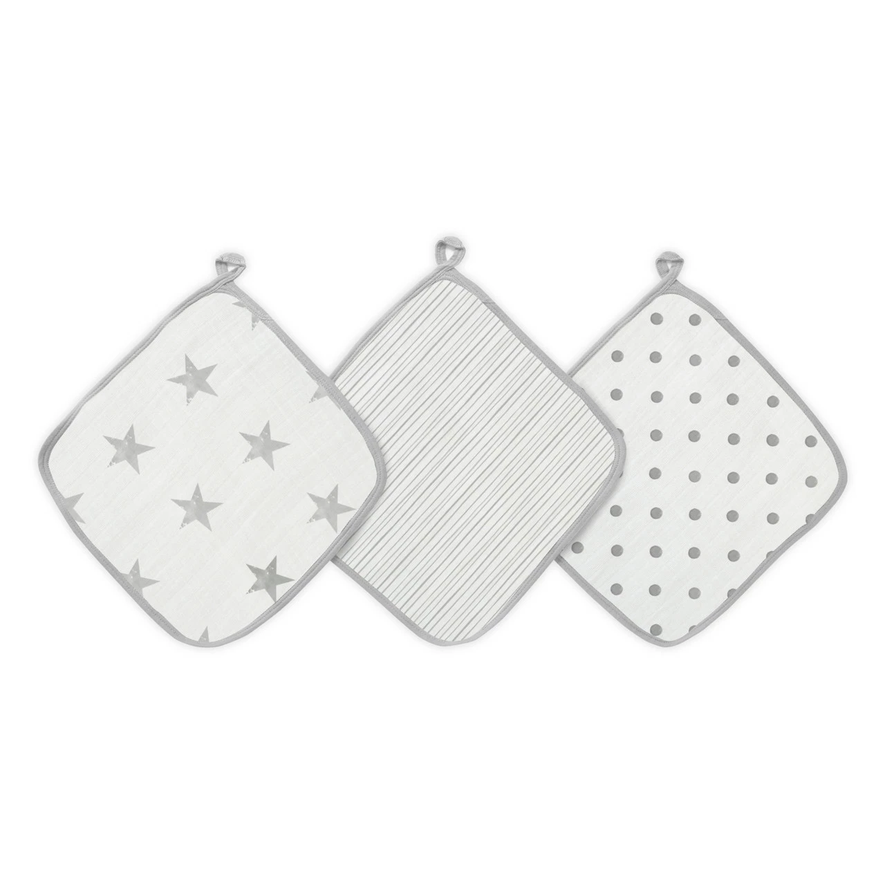 Includes 3 pre-washed 11” x 11” (27.5cm x 27.5cm) 100% cotton muslin washcloth. Practical: machine washable.