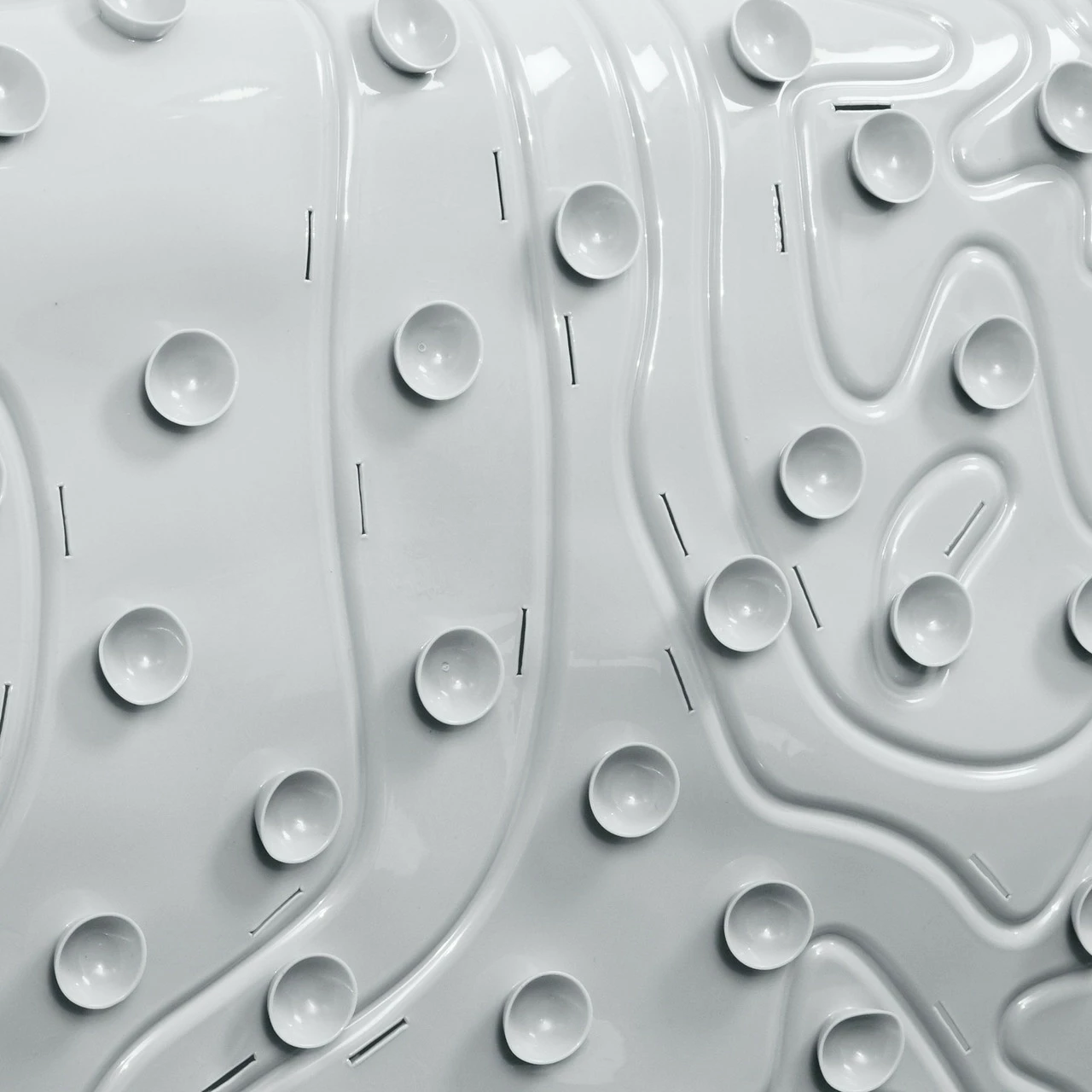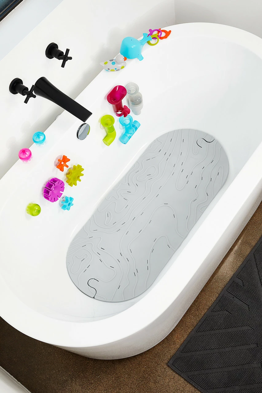 THE BEST THING IN THE TUB SINCE YOUR KID What do we not love about baby bath mats? They’re too small (annoying), they’re stiff (ouch) and water gets trapped underneath them (nasty). Well, no more. GRIFFLE covers a large portion of your tub, has a super soft textured surface to prevent slipping and, get this, it features a built-in hook for hanging and drain holes that expel water. The effect on bath time is gonna be epic.