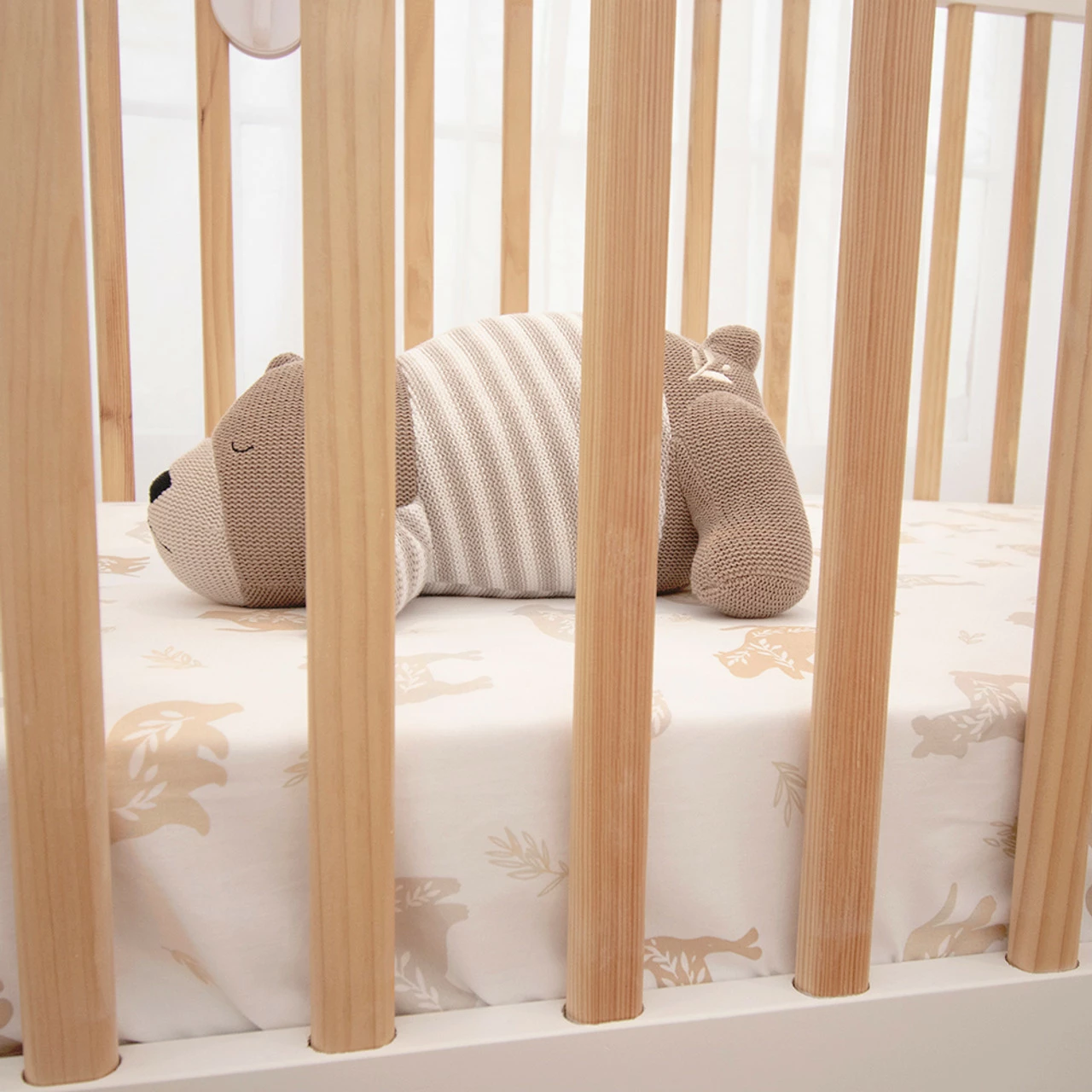 Add a layer of comfort and character to your baby’s cot with our delightfully soft and silky cot fitted sheet. Made from soft and silky 100% cotton sateen, it features extra- deep corners and fully elasticated sides for a secure fit. Match back with other coordinating accessories from the Bosco Bear collection to create the nursery of your dreams.