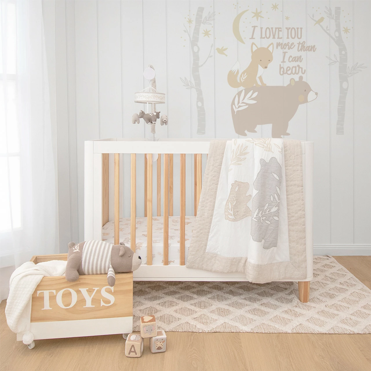 Create a stunning feature wall in your nursery with these gorgeous Bosco Bear- inspired removal wall stickers. Place above your cot, change table, or any blank wall for a beautiful statement piece that won’t damage your walls.
