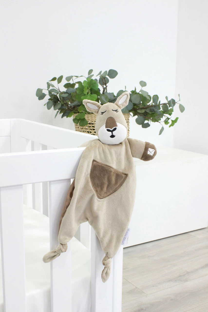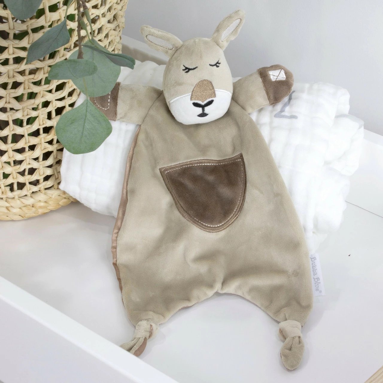 The Bubba Blue Aussie & Zoo animals collection of baby security blankets are perfect for little hands to grip, cuddle and play with. Each blanket features a cute animal character head, knotted corners, soft and cuddly velour blanket body, and smooth satin lining giving a gorgeous and soft texture to soothe and comfort. Our security blankets make the perfect first comfort toy for babies.