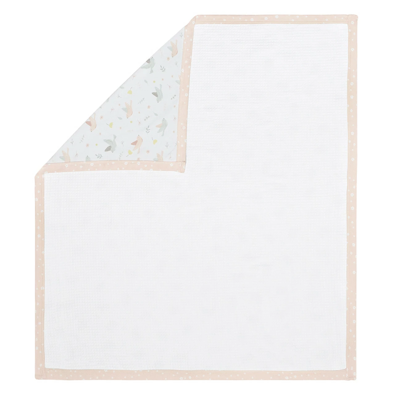 Our specially woven 100% cotton waffle is made with a tight weave to prevent snagging and features a smooth and snuggly cotton jersey backing; making it perfect for year- round use. Match back with other items from the Ava collection to create the nursery of your dreams.