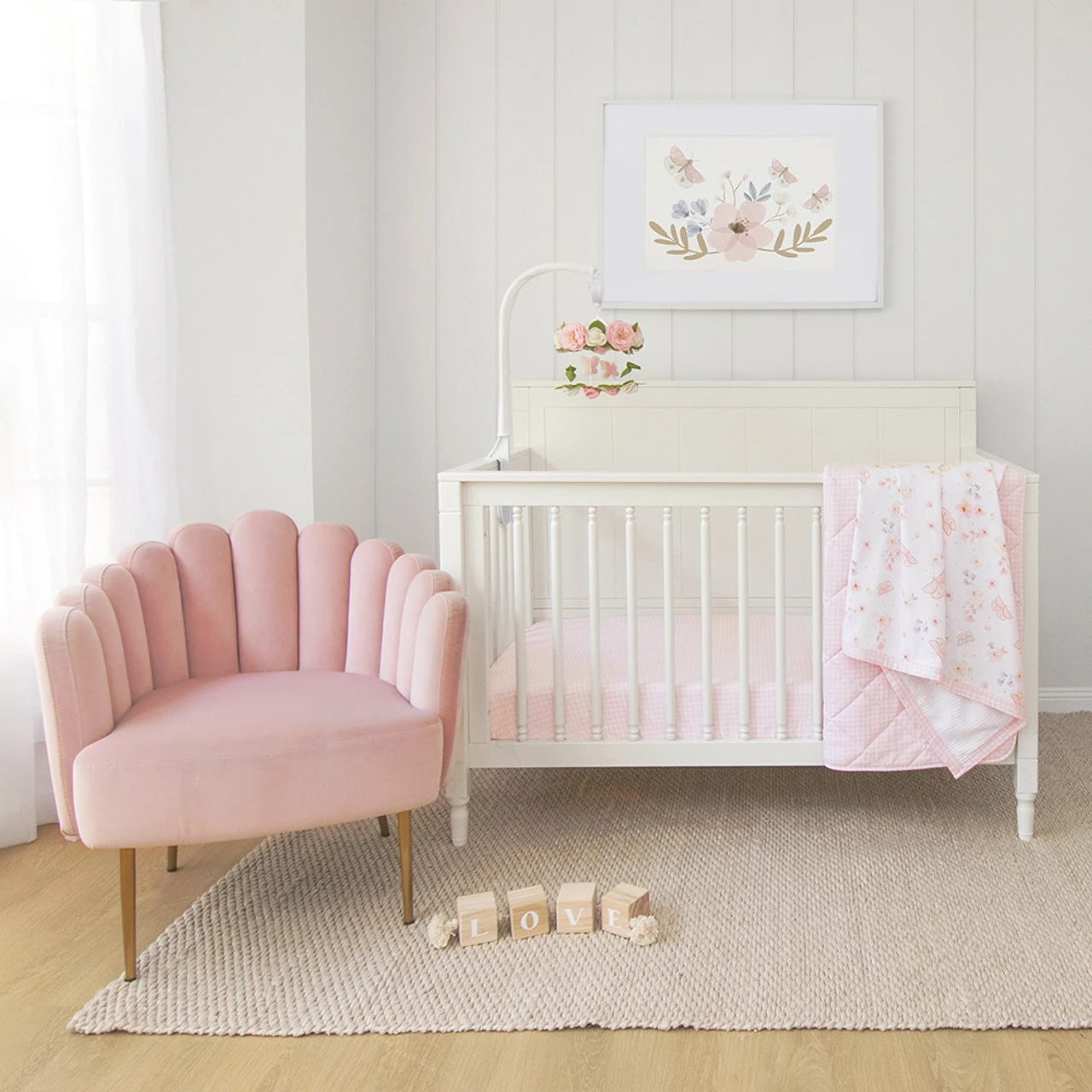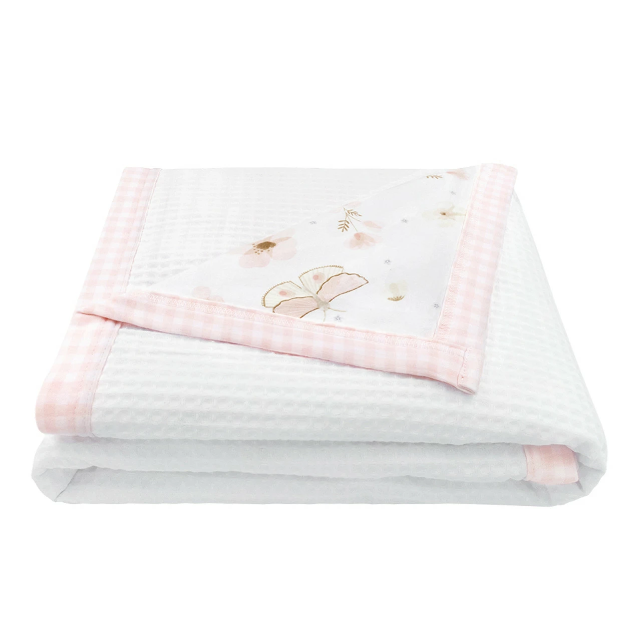 Our gorgeous 100% cotton 2-layer cot waffle blanket is especially woven with a tight weave to prevent snagging. It features a smooth and snuggly 100% cotton jersey interlock backing with contrasting trim and is perfect for year-round use. Match back with other items from the Butterfly Garden collection to create the nursery of your dreams. Features: Made from 100% cotton Generously sized at 100 x 110cm Machine washable Tumble dry safe Matching sheets and other décor available Dimensions: 100 x 110cm Composition: 100% cotton