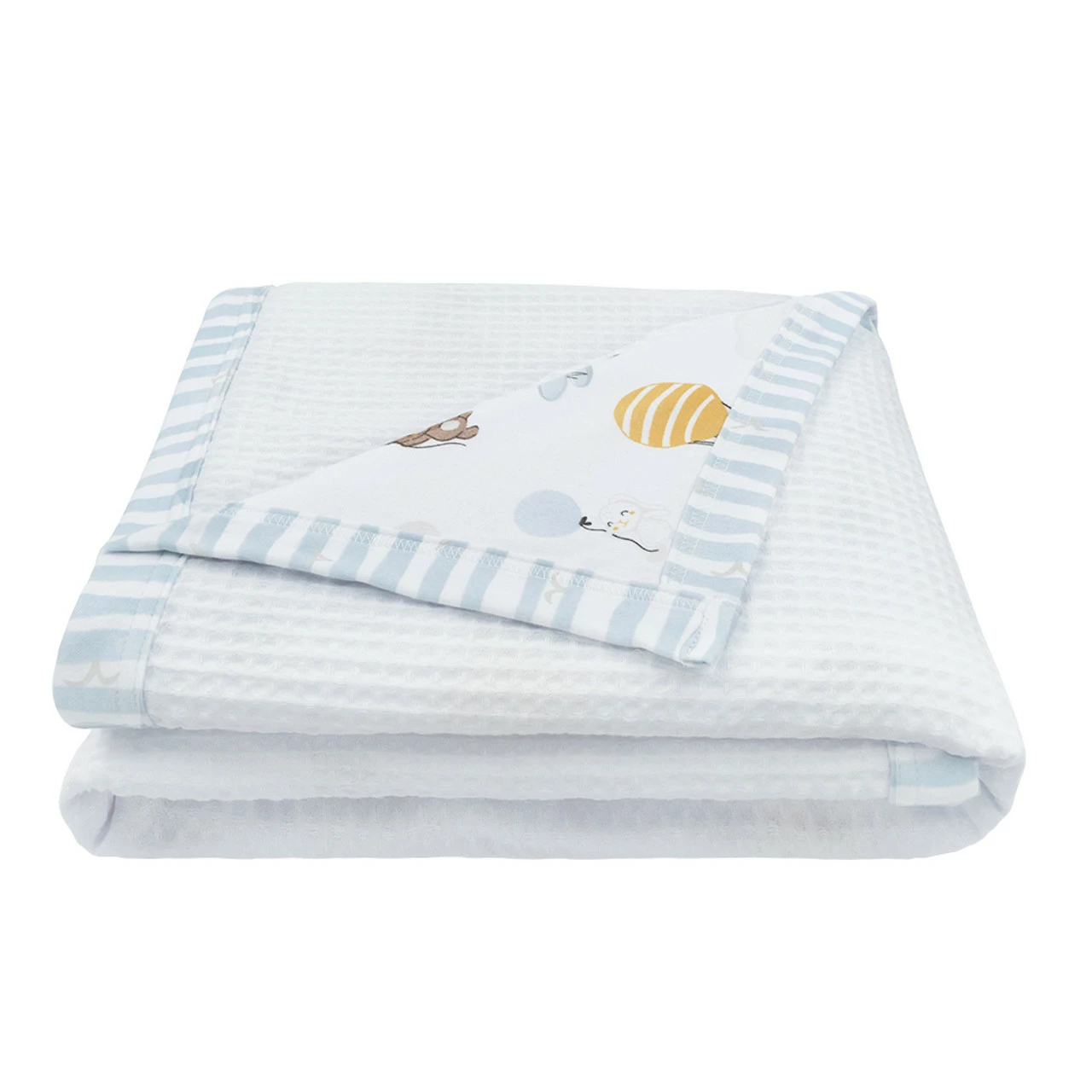Our gorgeous 100% cotton 2-layer cot waffle blanket is especially woven with a tight weave to prevent snagging. It features a smooth and snuggly 100% cotton jersey interlock backing with contrasting trim and is perfect for year-round use.