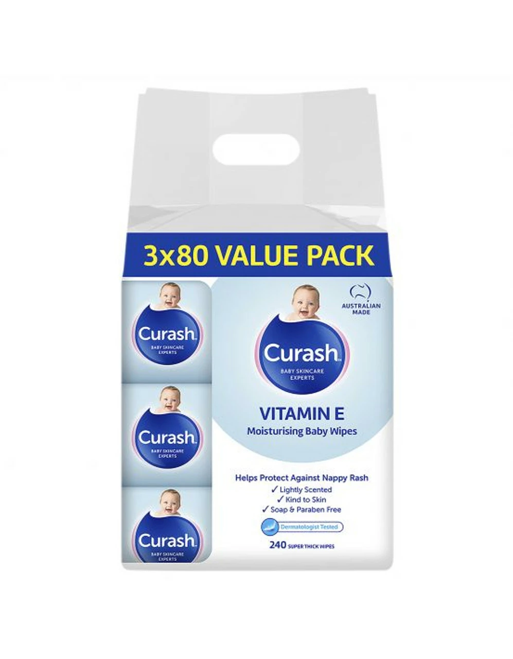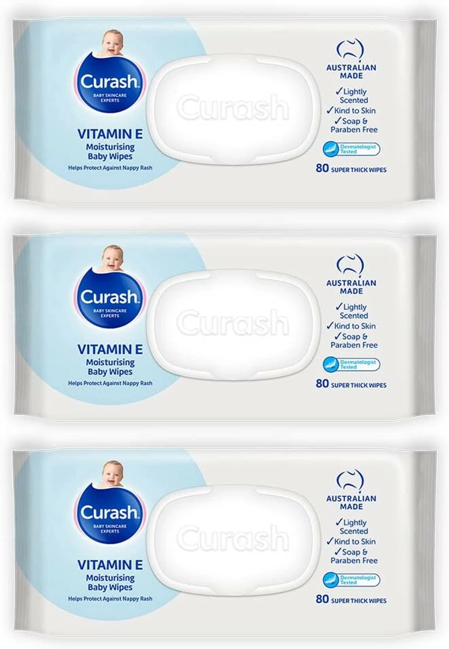 Curash Baby Wipes Original Vitamin E 3 x 80 Bulk Pack Baby Skincare Experts