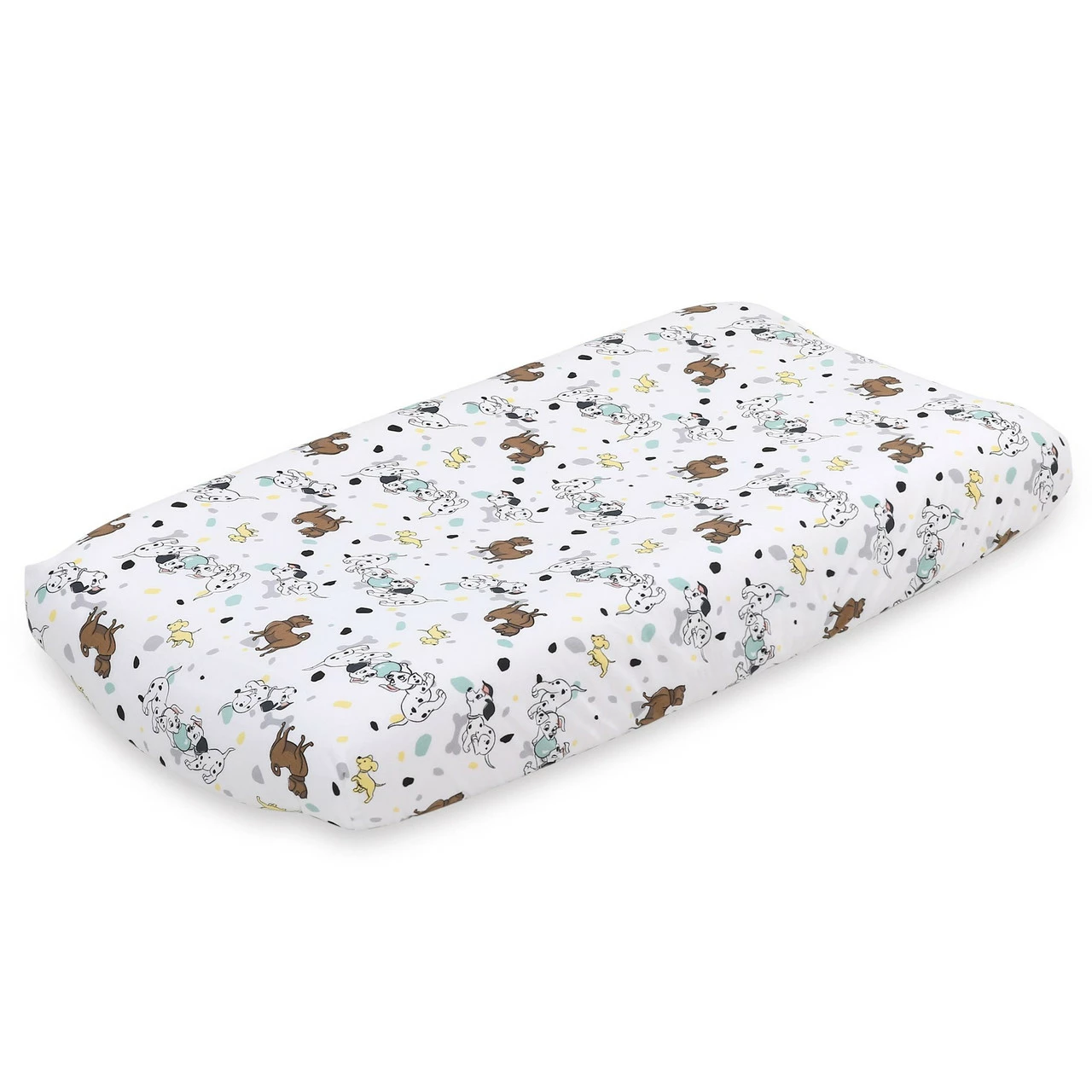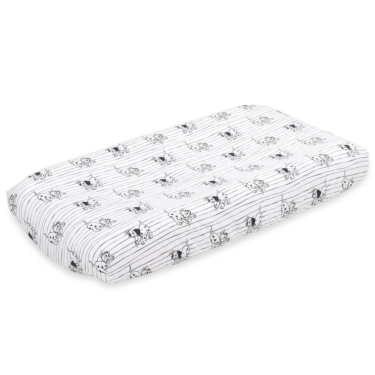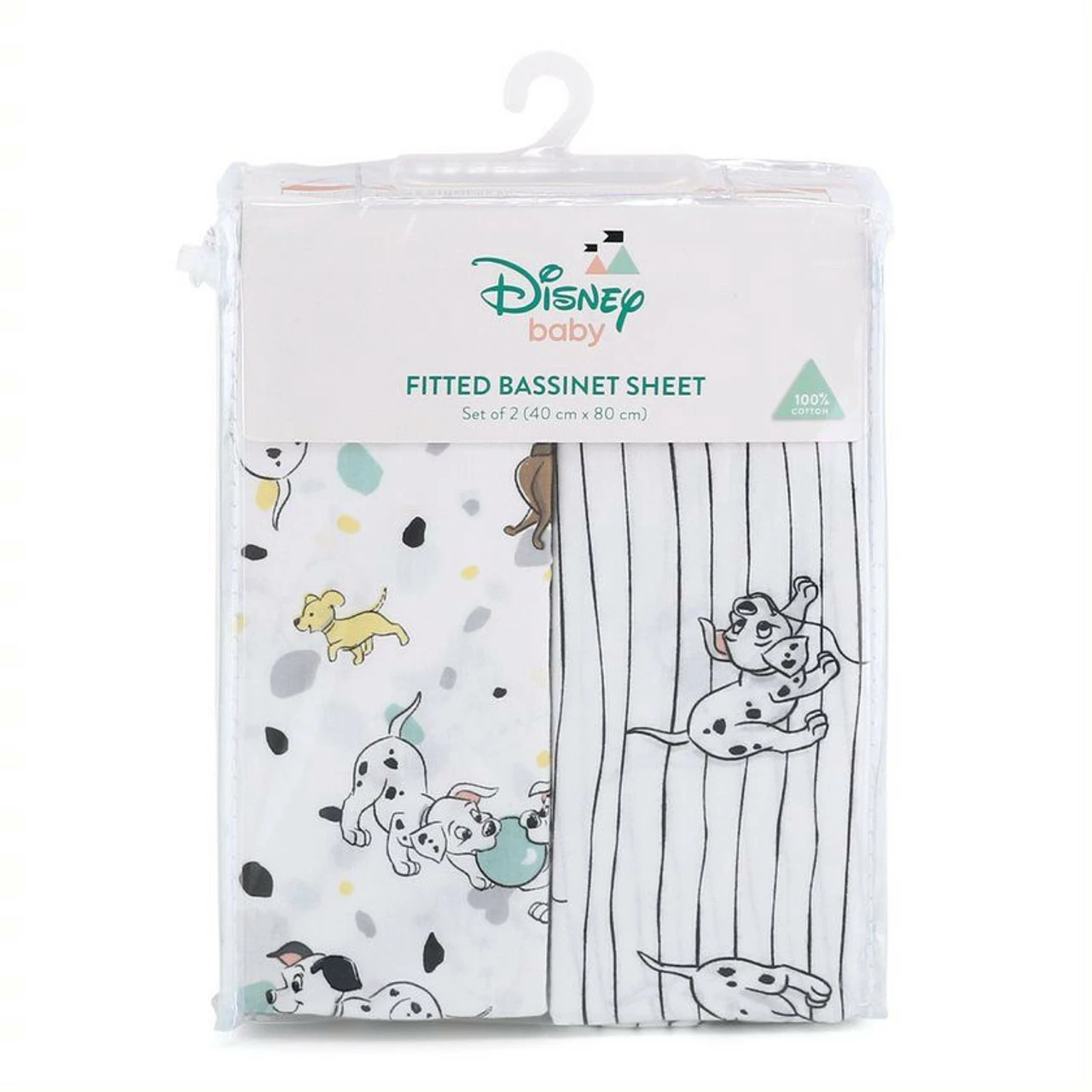 The Disney Dalmatians 2 Pack Bassinet Sheets feature a tossed print of playful pups running and playing, and a novelty stripe with the pups engaged in a bit of tug-of-war. These fun and modern black and white prints are accented with shades of grey, aqua, and yellow, all on a crisp white ground. 100% cotton fitted bassinet sheets will allow you to always have an extra sheet on hand for quick changes. Perfect to send your little one off to sleep, dreaming of fun times with these playful pooches! Pair with other items from the Disney Dalmatians collection for the best of times with these popular pooches and your little one’s new best friends.