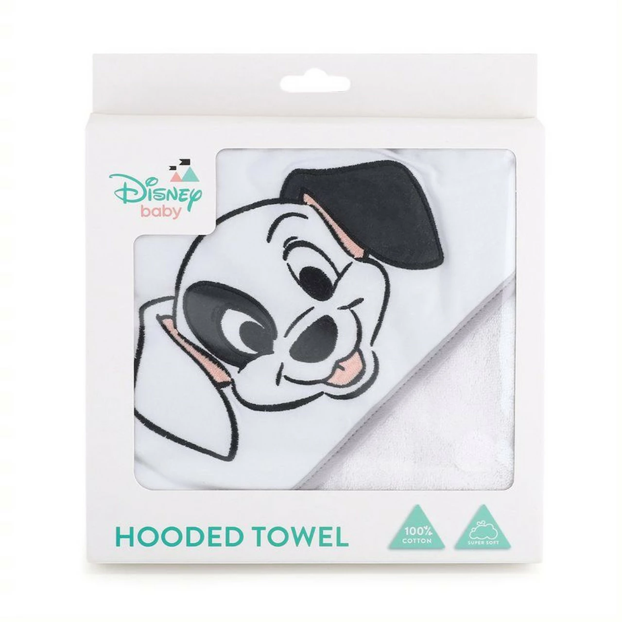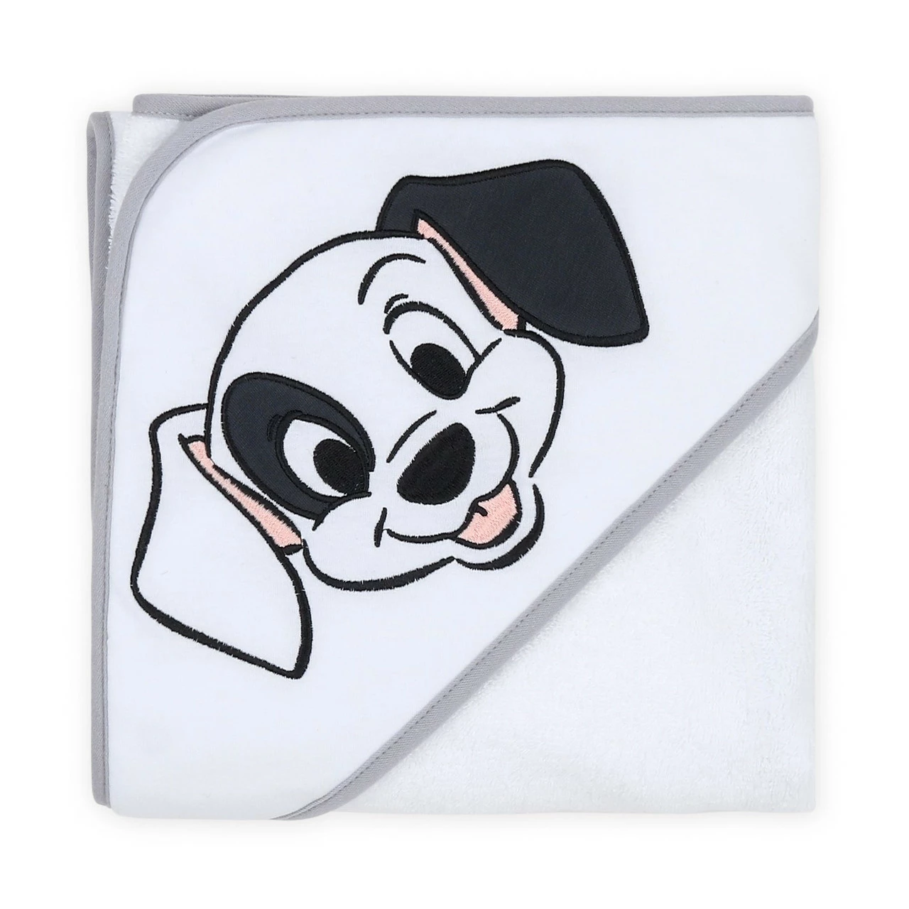 Perdita’s and Pongo’s playful pups are sure to capture your little one’s imagination and bring them on an adventure! Disney Dalmatians Hooded Towel, with an applique and embroidered face on the towel hood. Super-soft cotton terry in crisp white is trimmed with a soft grey binding. This playful pup will make bath time fun! Pair with other items from the Disney Dalmatians collection for the best of times with these popular pooches and your little one’s new best friends.