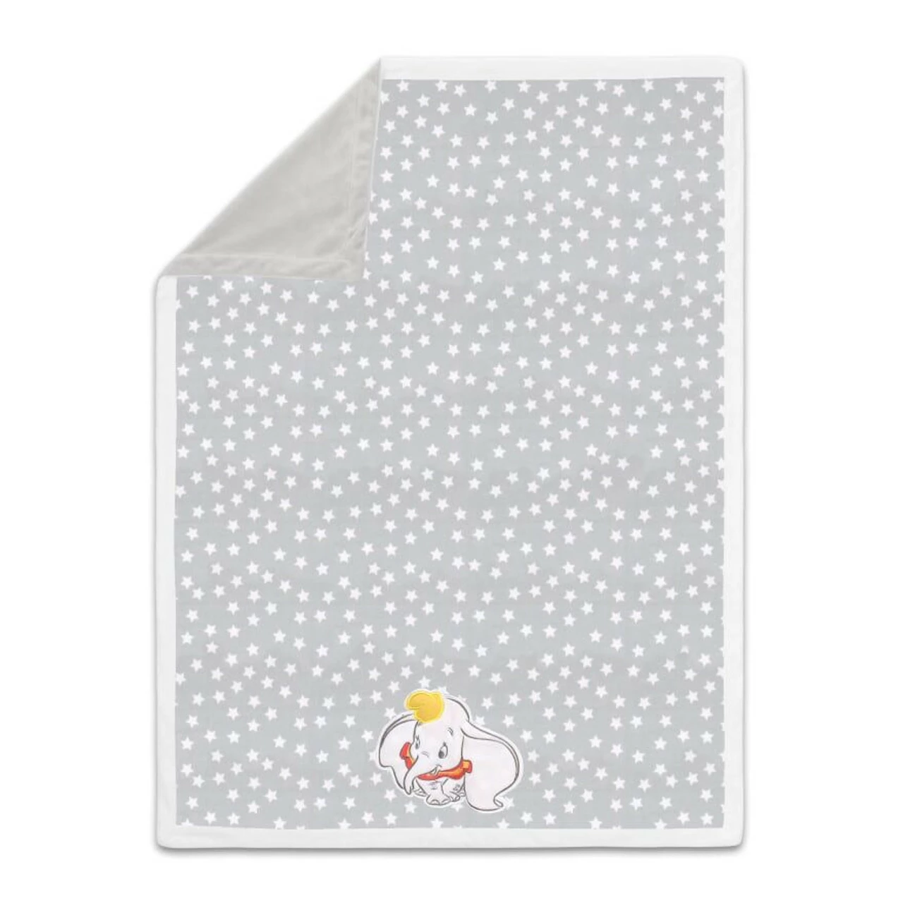 Get ready to cuddle up with the most loveable character with this velour Disney Dumbo Blanket. The grey velour sparkles with bright white stars throughout; reverses to a solid grey back. The cosy blanket finishes with a white contrast band around the edges. The Dumbo applique centres the design with embroidered details; bright and happy colours in shades of blues, reds and yellows can’t help but make you smile. Perfect for staying warm during a stroll or a super soft cuddle.
