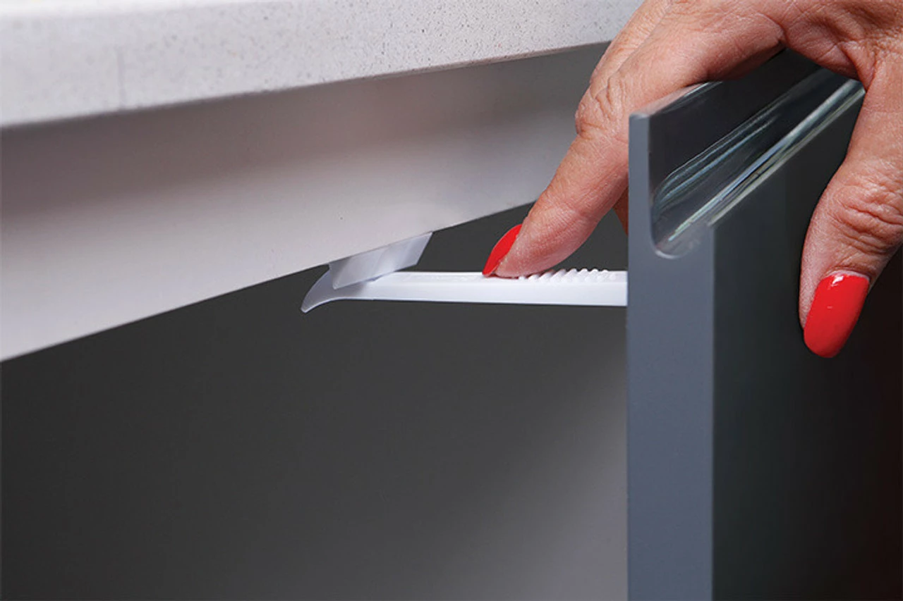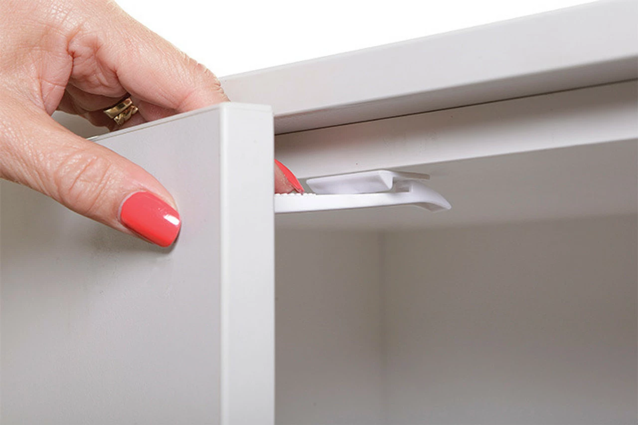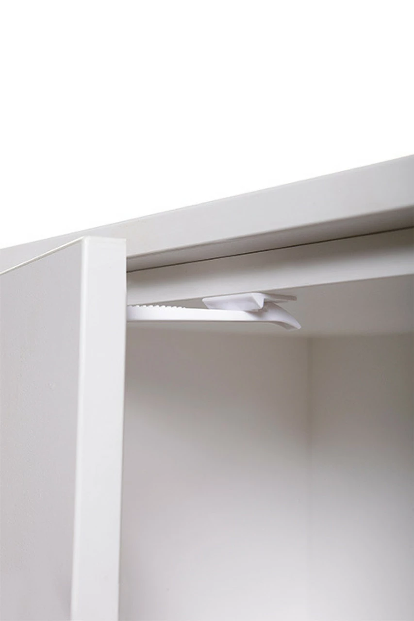 The Dreambaby® Adhesive Safety Latches help prevent children from accessing cabinets and drawers. Longer length is ideal for overhanging benchtops.