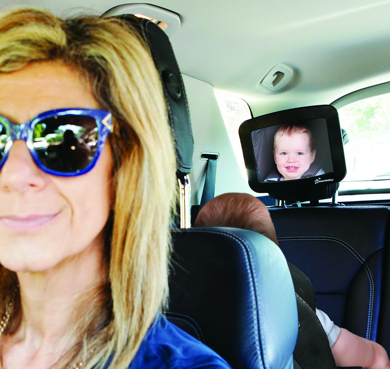 The Dreambaby® Adjustable Backseat Mirror allows an easy view of your child in a rear-facing car seat.