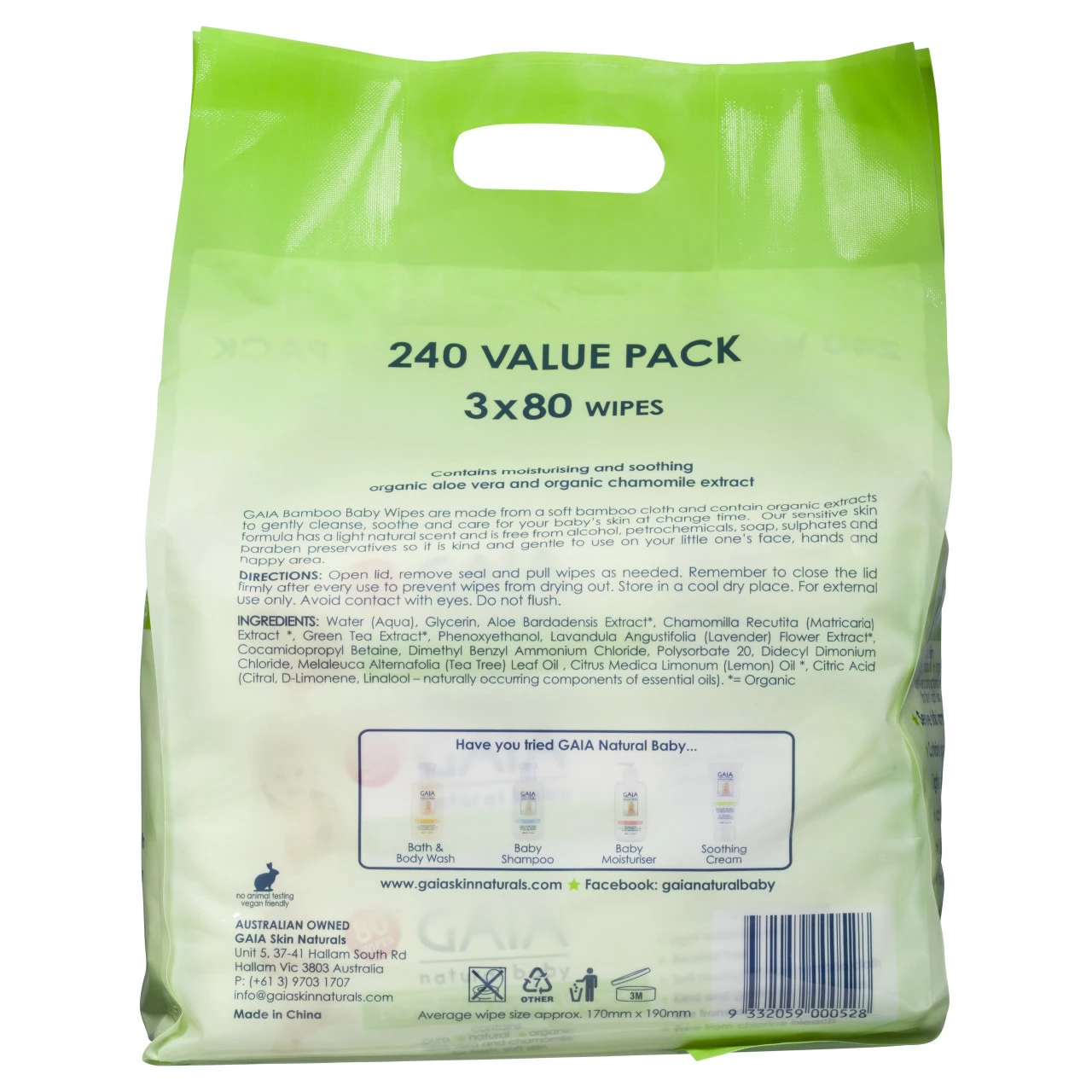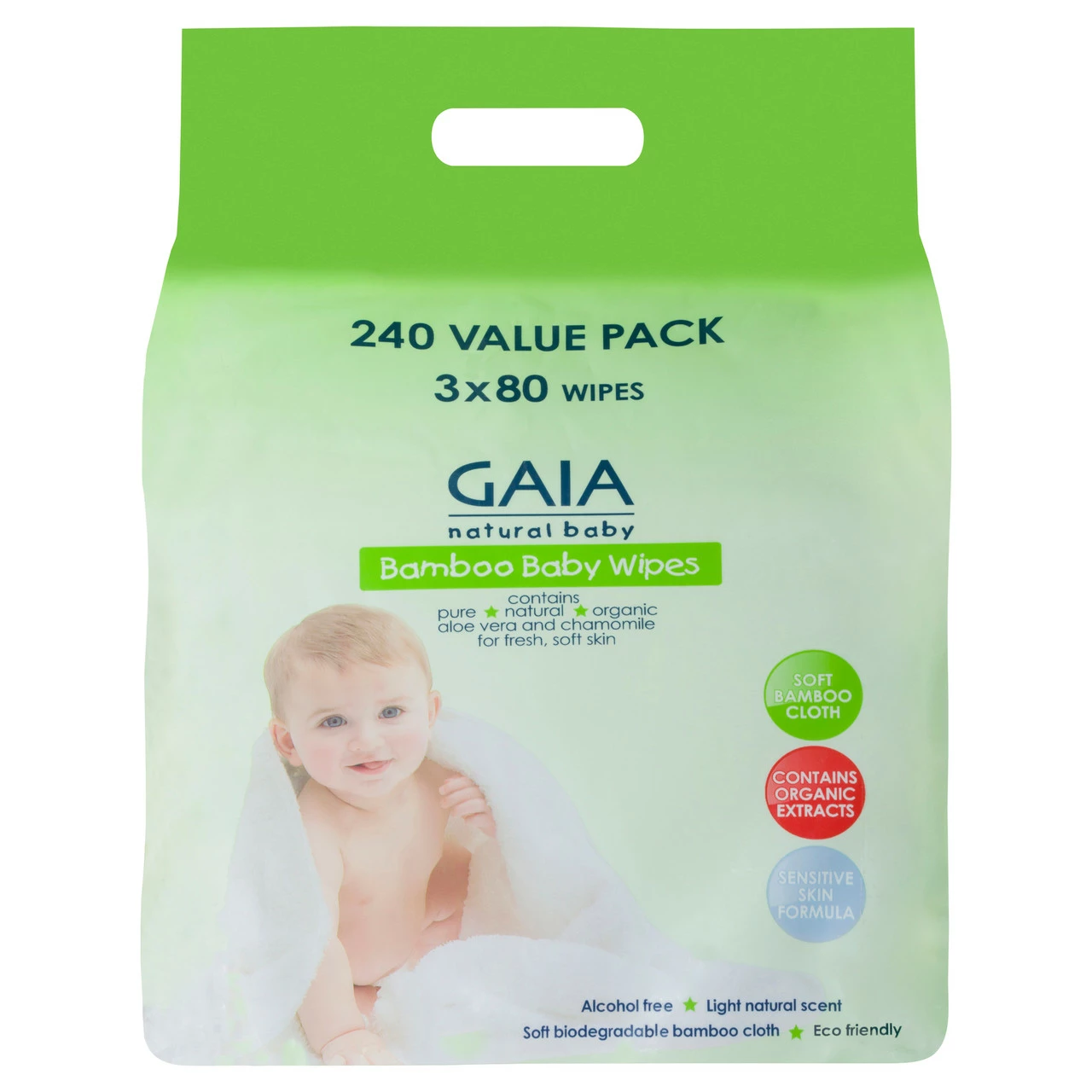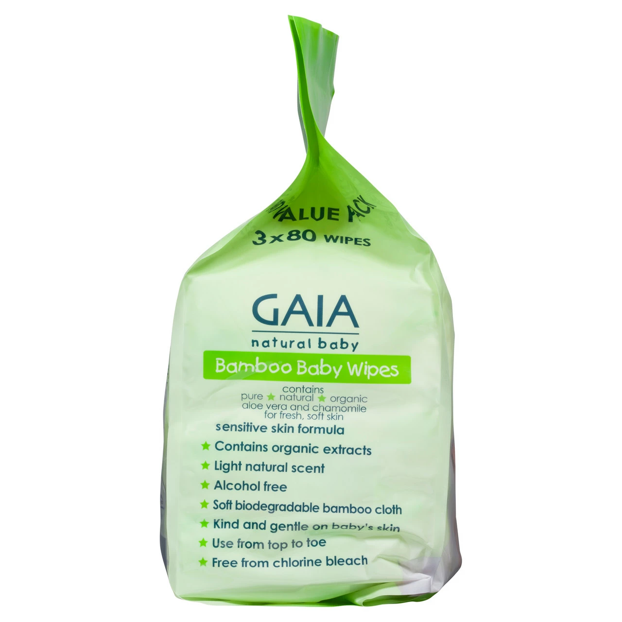 GAIA Bamboo Baby Wipes are made of soft bamboo cloth and contain organic extracts to gently cleanse, soothe and care for baby’s skin at change time. The sensitive skin formula has a light natural scent and is free from alcohol, petrochemicals, soap, sulphates and paraben preservatives so it is kind and gentle to use on your little one’s face, hands and nappy area.