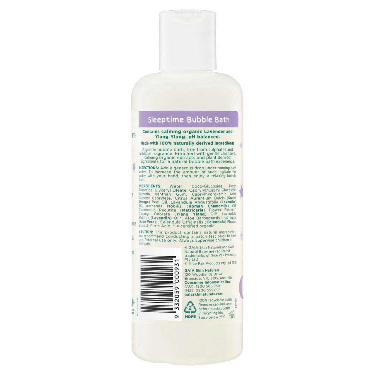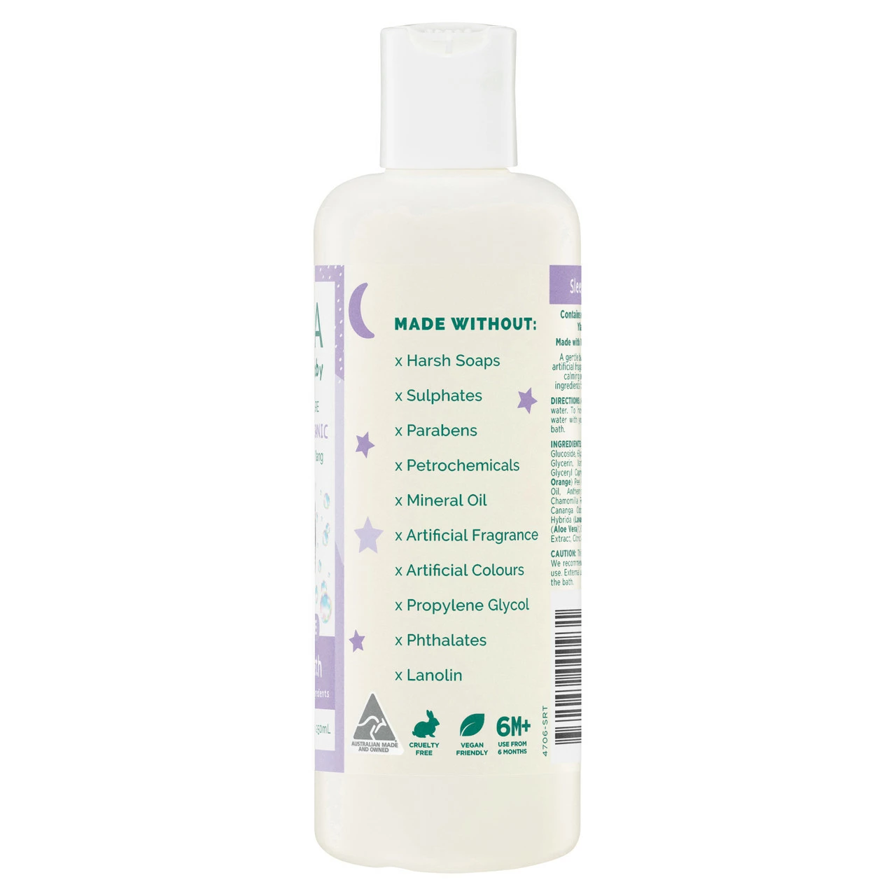 A gentle bubble bath, free from sulphates and artificial fragrance. Enriched with gentle cleansers, organic extracts and 100% naturally derived ingredients for a calming sudsy bath time experience. Certified cruelty free and lovingly Australian Made and owned. Formulated with organic Lavender, organic Ylang Ylang and organic Aloe Vera extract. Suitable from 6mths + Suitable for sensitive skin Dermatologically tested Free from: Harsh soaps, sulphates, parabens, petrochemicals, mineral oil, artificial fragrance, artificial colours, propylene glycol, phthalates, lanolin