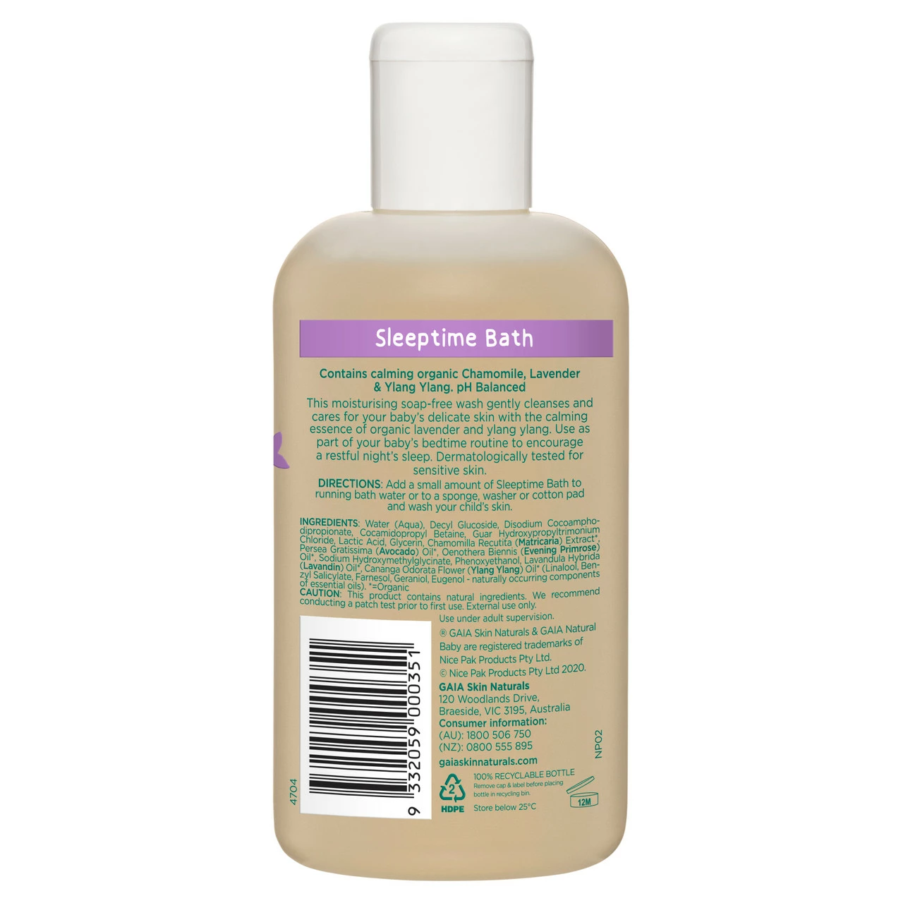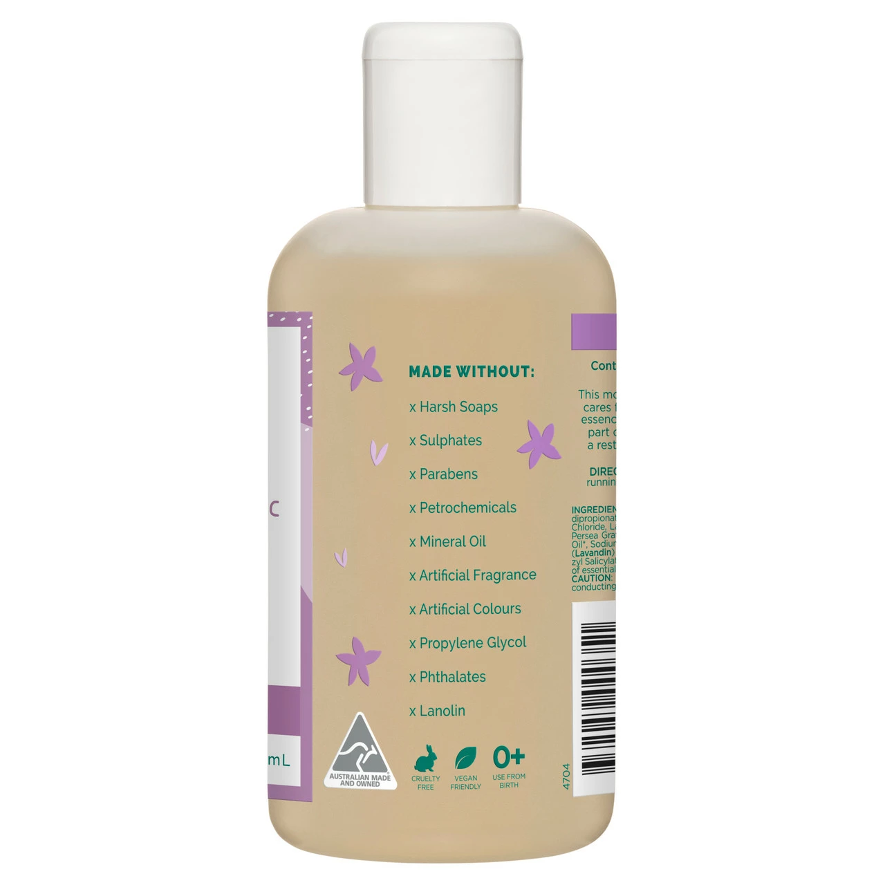 A gentle bubble bath, free from sulphates and artificial fragrance. Enriched with gentle cleansers, organic extracts and 100% naturally derived ingredients for a calming sudsy bath time experience. Certified cruelty free and lovingly Australian Made and owned. Formulated with organic Lavender, organic Ylang Ylang and organic Aloe Vera extract. Suitable from 6mths + Suitable for sensitive skin Dermatologically tested Free from: Harsh soaps, sulphates, parabens, petrochemicals, mineral oil, artificial fragrance, artificial colours, propylene glycol, phthalates, lanolin