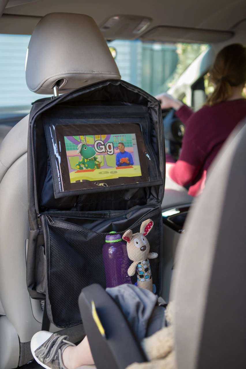 Keep your back seat organised and your child occupied in the car with the Zip Up Organiser with Tablet Holder.