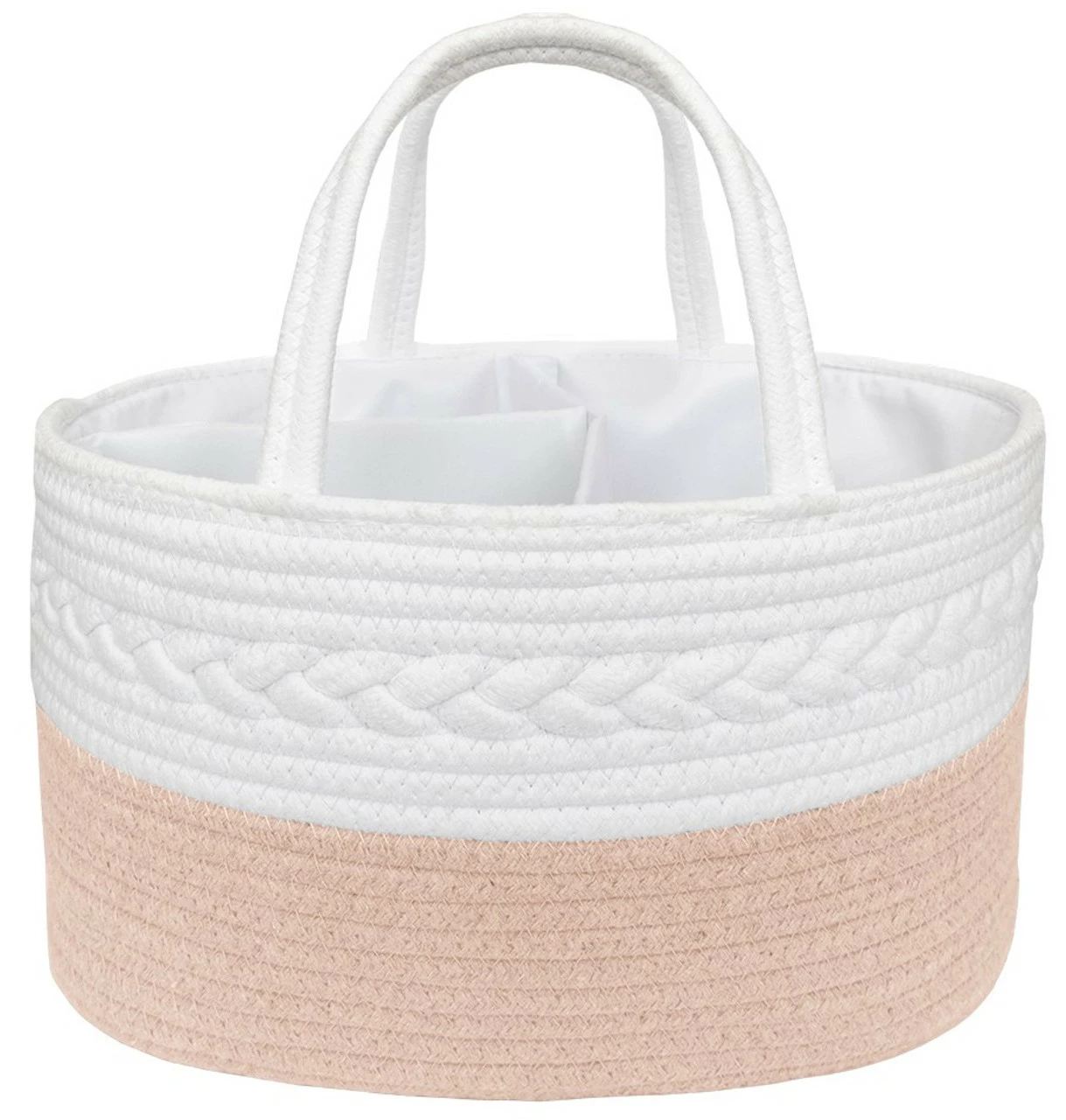 Keep your nursery neat and tidy and within arms reach with this 100% cotton rope nappy caddy. Designed to hold everything you need for changing baby, the removable divider helps keep everything organised and easily accessible.