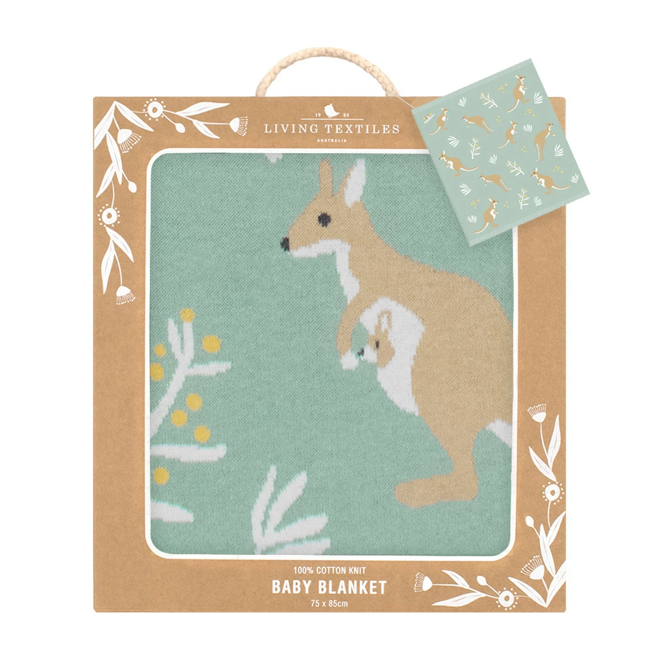 Keep baby warm and cosy when out and about with this super soft 100% cotton knit Kangaroo baby blanket. Perfectly sized for the pram or bassinet, this lightweight blanket will add a dose of style to an adventure. Presented in a gorgeous gift box, it also makes the perfect gift. Features: Perfectly sized at 75 x 85cm for the pram so it won’t get caught under wheels Made from 100% cotton knit Designed in Australia Machine washable and tumble dry safe Perfect as a baby shower or newborn gift Dimensions: 75x85cm Materials: 100% cotton knit