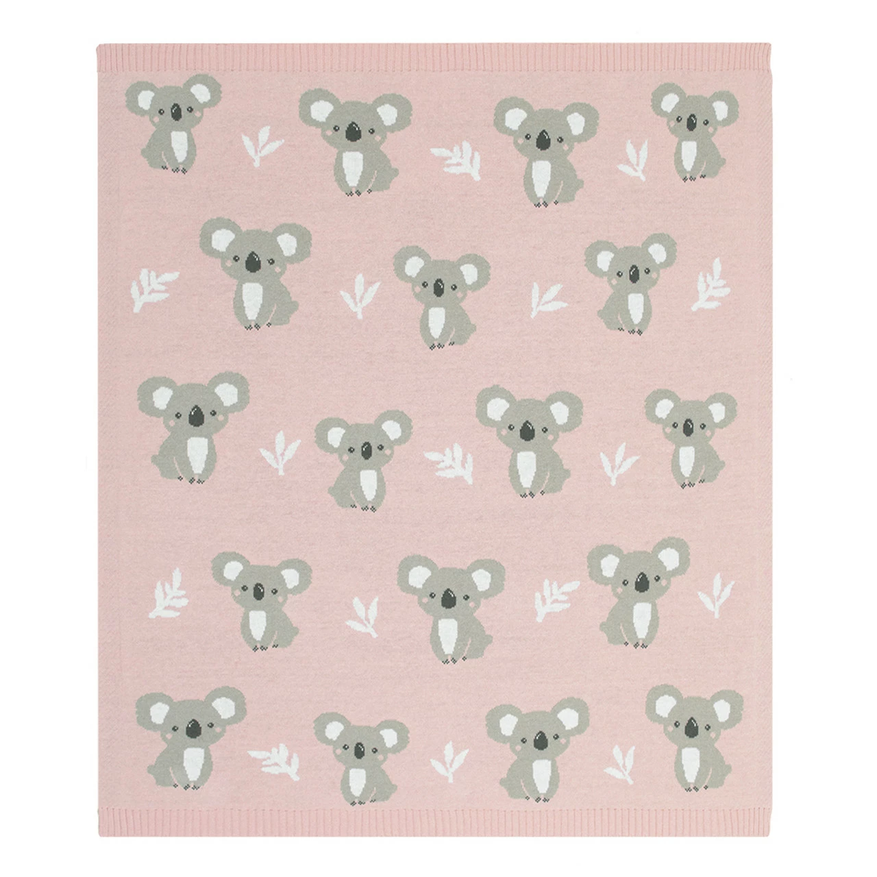 Keep baby warm and cosy when out and about with this super soft 100% cotton knit Koala baby blanket. Perfectly sized for the pram or bassinet, this lightweight blanket will add a dose of style to an adventure. Presented in a gorgeous gift box, it also makes the perfect gift. Features: Perfectly sized at 75 x 85cm for the pram so it won’t get caught under wheels Made from 100% cotton knit Designed in Australia Machine washable and tumble dry safe Perfect as a baby shower or newborn gift Dimensions: 75x85cm Materials: 100% cotton knit