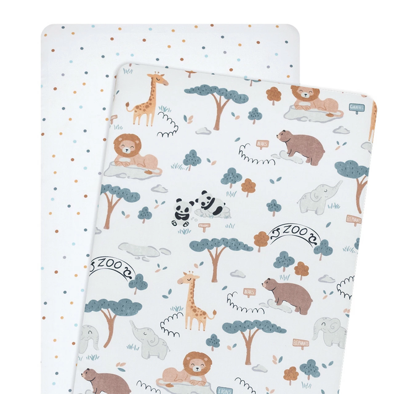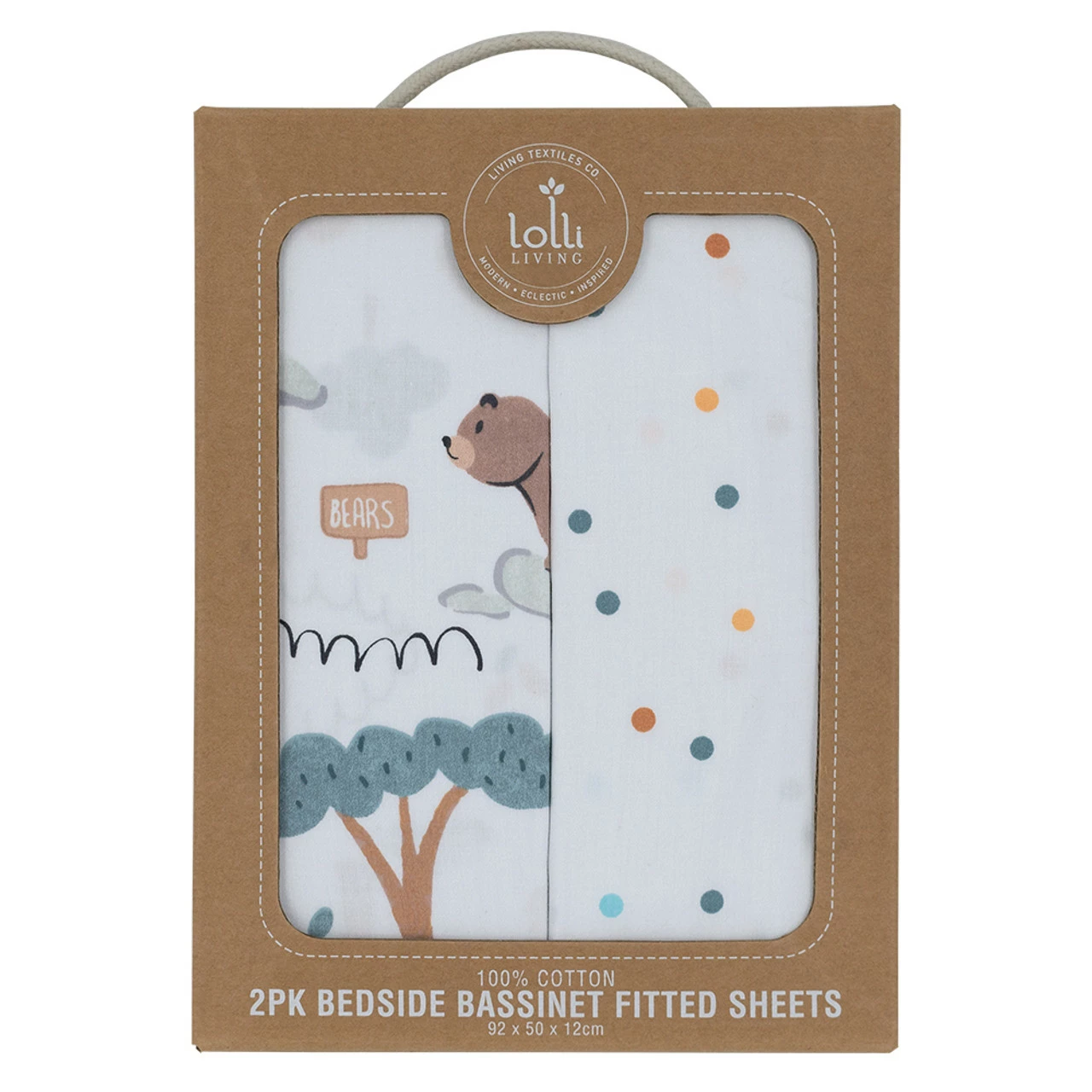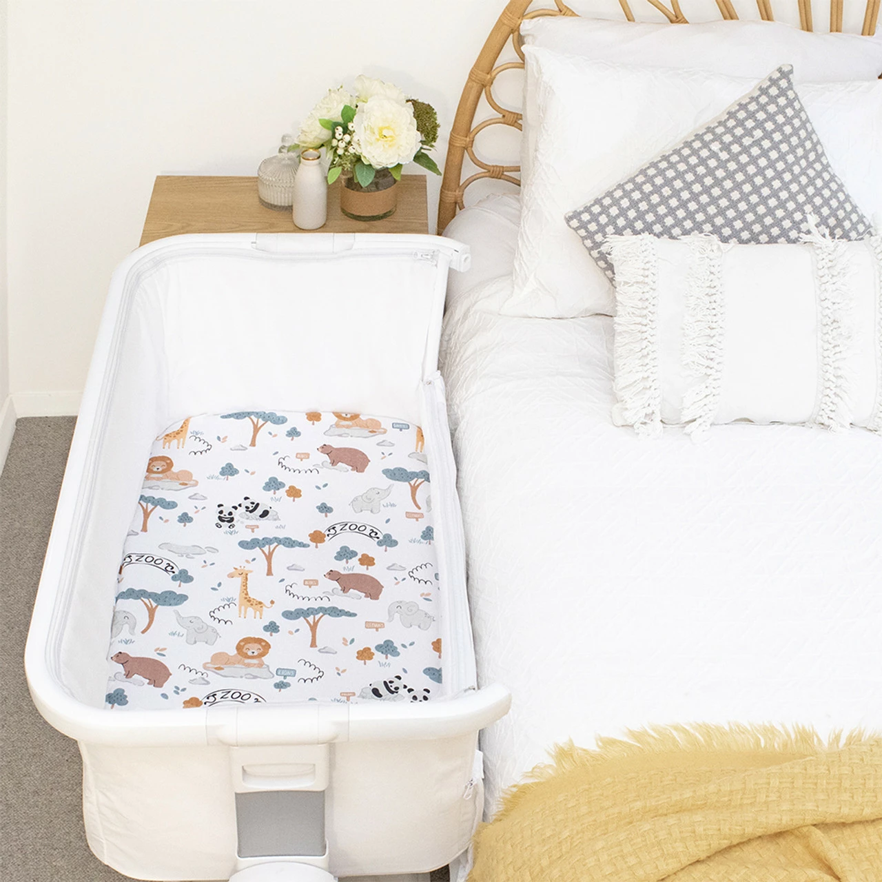 Add a layer of comfort and character to your baby’s bedside bassinet/co-sleeper with this delightfully soft fitted sheet set. Made from 100% cotton sateen that feels soft and silky against baby’s skin, these sheets are fully elasticized with extra-deep corners for a secure fit. Match back with our coordinated Day the Zoo accessories including musical cot mobile, playmat and bassinet pram blanket to create your dream nursery. Features: Soft and silky 100% Cotton Sateen fabric Fully elasticised with extra deep sides for a secure fit Convenient 2 pack so you always have a spare Machine washable and tumble dry Sized at 92 x 50 x 12 cm to fit a range of bassinets, bedside bassinets and co-sleepers and more. Dimensions: 92 x 50 x 12cm Composition: 100% Cotton Sateen