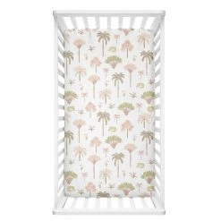 Add a layer of comfort and character to your baby’s cot with our delightfully soft and silky Tropical Mia cot fitted sheet. Made from 100% cotton sateen that feels soft and silky against baby’s skin, this sheet is fully elasticized and features extra-deep corners for the most secure fit possible. Match back with our coordinated Day at the Zoo accessories including musical cot mobile, playmat and fun removal wall decals to create a fun nursery for your little one. Features: Soft and silky 100% cotton sateen fabric Fully elasticised with extra deep sides for a secure fit Machine washable and tumble dry safe Fits standard and large sized cots 77x132x19cm Dimensions: 75x 135 x 19cm, fits standard and large sized cots Composition: 100% Cotton Sateen