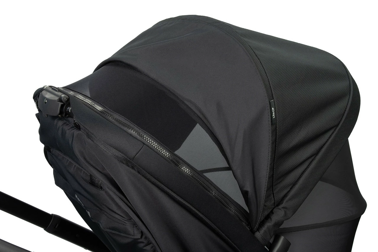 - Extended UPF50+ canopy with peek-a-boo window