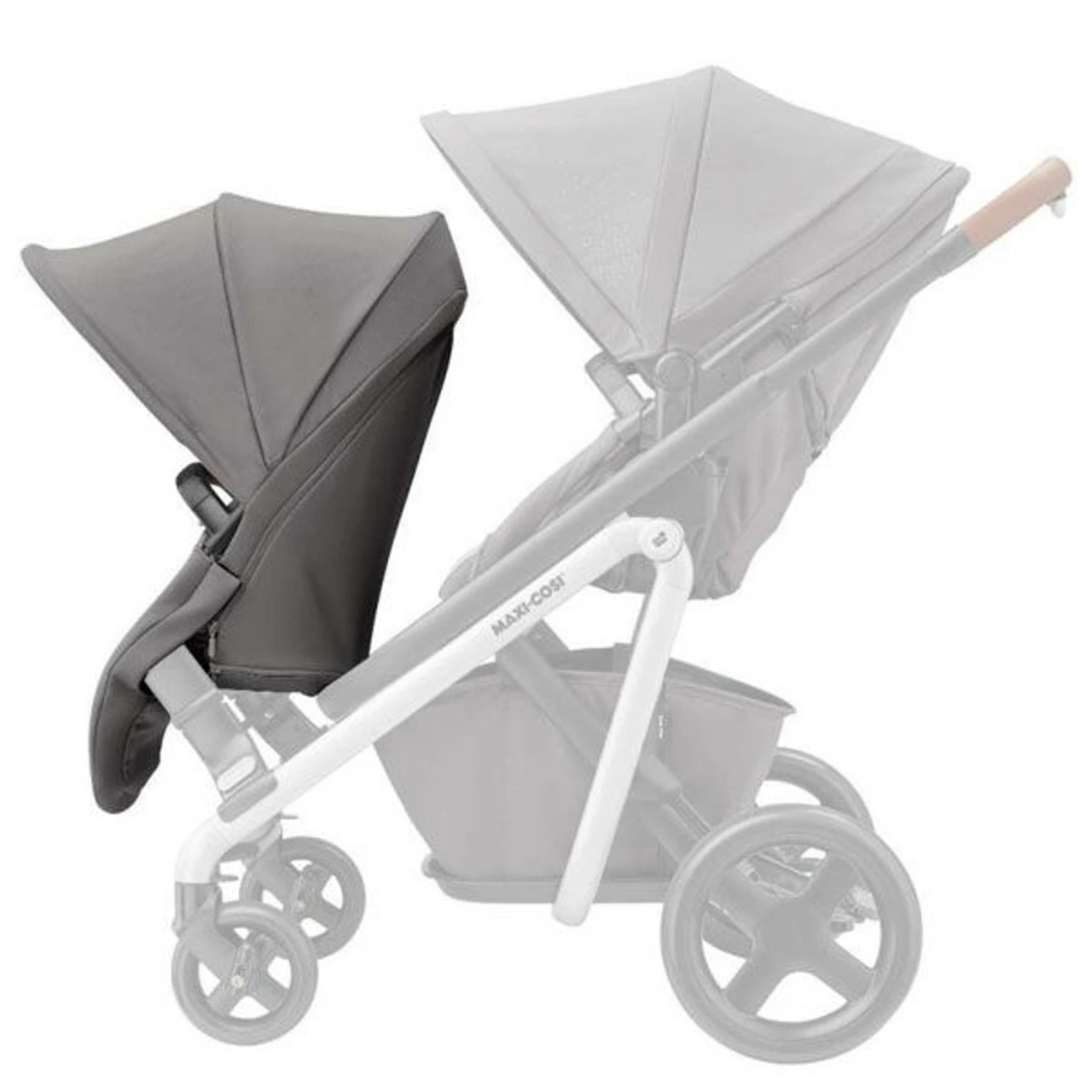 The NEW Lila Stroller sets a new standard in stroller comfort. You may never want to put your child down. But when you have to, Lila is the next best place. Developed in collaboration with paediatricians, Maxi Cosi’s newest stroller has been carefully designed for supreme travel comfort for babies and toddlers and make your life as a parent easier. Suitable for babies from birth to 4 years of age (20kgs), the Lila Stroller transforms from a single stroller to dual configuration easily. With comfort always top of mind, a pediatrician-developed ShapeOfYou newborn inlay was designed especially for the Lila. The ergonomic memory foam cocoon inlay reduces space around the child’s body, providing the ultimate feeling of security, and the shaped cavity also reduces pressure under the child’s head, helping to prevent flat-head syndrome. Lila also captures the attention of fashion-forward parents, with vegan leather accents, a sleek narrow silver frame and colour varieties to embody the style of any on-the-go parent. And for parents expecting a second, a duo kit is an available add on to accommodate a baby and toddler at the same time. One of the new features of the Lila Stroller is the ShapeOfYou memory foam inlay, created in collaboration with some of the worlds leading pediatricians. The inlay: – Provides the utmost comfort for a newborn – Provides an ergonomic position to encourage babies development – From birth to 4months – Natural position with legs slightly bended up – Reduces the space for security feeling – Shaped cavity to avoid flat head syndrome KEY PRODUCT FEATURES Best-in-class comfort and safety for baby: – ShapeOfYou ergonomic newborn memory foam inlay designed with pediatricians – Reversible seat that turns into lie flat bassinet perfect for naps on the go – Transformable seat with multiple recline positions for use from birth – Reversible, thermo-regulated mattress: breathable mesh for summer time; soft warm fleece for winter time – Integrated nap keeper to create additional shade – Boot cover included – Big UPF 50+ canopy with peek-a-boo window – Rain cover and bumper bar included – Maxi-Cosi genuine 5-point harness – 4 shock-absorbing suspension wheels – Light reflectors on the canopy for safe walks with baby at night Ease of use for parents: – Fast one-hand folding – SmoothRide long-lasting wheels: new biomaterial wheels for greater durability – Automatic lock – Front wheels can be locked for more maneuverability – Removable and fashionable shopping basket for easy access without excessive bending – Easy-braking system – Transforms into duo stroller for children close in age (Duo seat sold separately) * All Maxi-Cosi Strollers comes with a 3+1 year warranty including wheels. Accessories Included: – ShapeOfYou Inlay – Boot cover – Rain cover – Adapters Comfort Duo Seat You bought a stroller for one child and now another baby is on the way. No worries, because the Maxi-Cosi Lila Duo Kit transforms the Lila stroller into a perfect duo stroller so you can go anywhere you need to with both of your young children. You can easily adjust the duo stroller into 5 different positions to ensure the best comfort for both of your kids. The special pedal helps you to easily lift the stroller to smoothly navigate difficult sidewalks. The Duo Kit is simple to install and store, and only one set of adaptors is needed. The kit comes complete with the second seat (suitable from 6 months), a set of adaptors, pedal and raincover.