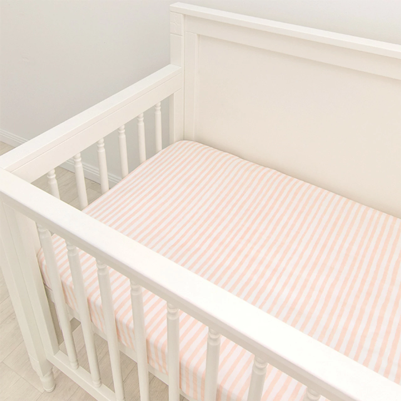 The gorgeous cot quilt features a floral embroidery accent and a 100% cotton sateen backing that lies smooth against your little one’s skin. Mix and match with one of two 100% cotton sateen cot fitted sheets in gorgeous blush floral or sweet watercolour stripes, and when your toddler is ready, pair with the reversible pillowcase.