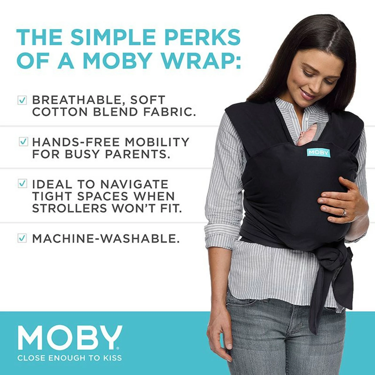A parenting favorite for its comfort, style, and adaptability, the award-winning MOBY Wrap is made from soft, breathable, durable fabric that provides the perfect snuggle for newborns, infants, and toddlers. The wrap evenly distributes the weight of carrying a baby across the back and hips, allowing for on-the-go comfort and hassle-free adventures. Soft and breathable, our durable 100% cotton textile keeps little ones in a comfortable position for long periods of time