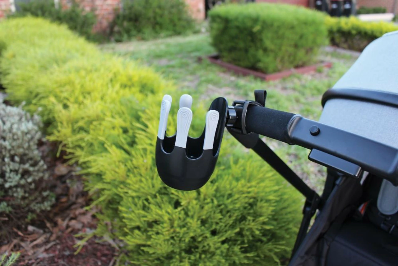 The stroller cup holder is perfect for busy parents on the go. It holds your beverage while your shopping or your drink while you exercise. The stroller cup holder is a must have addition to your stroller.