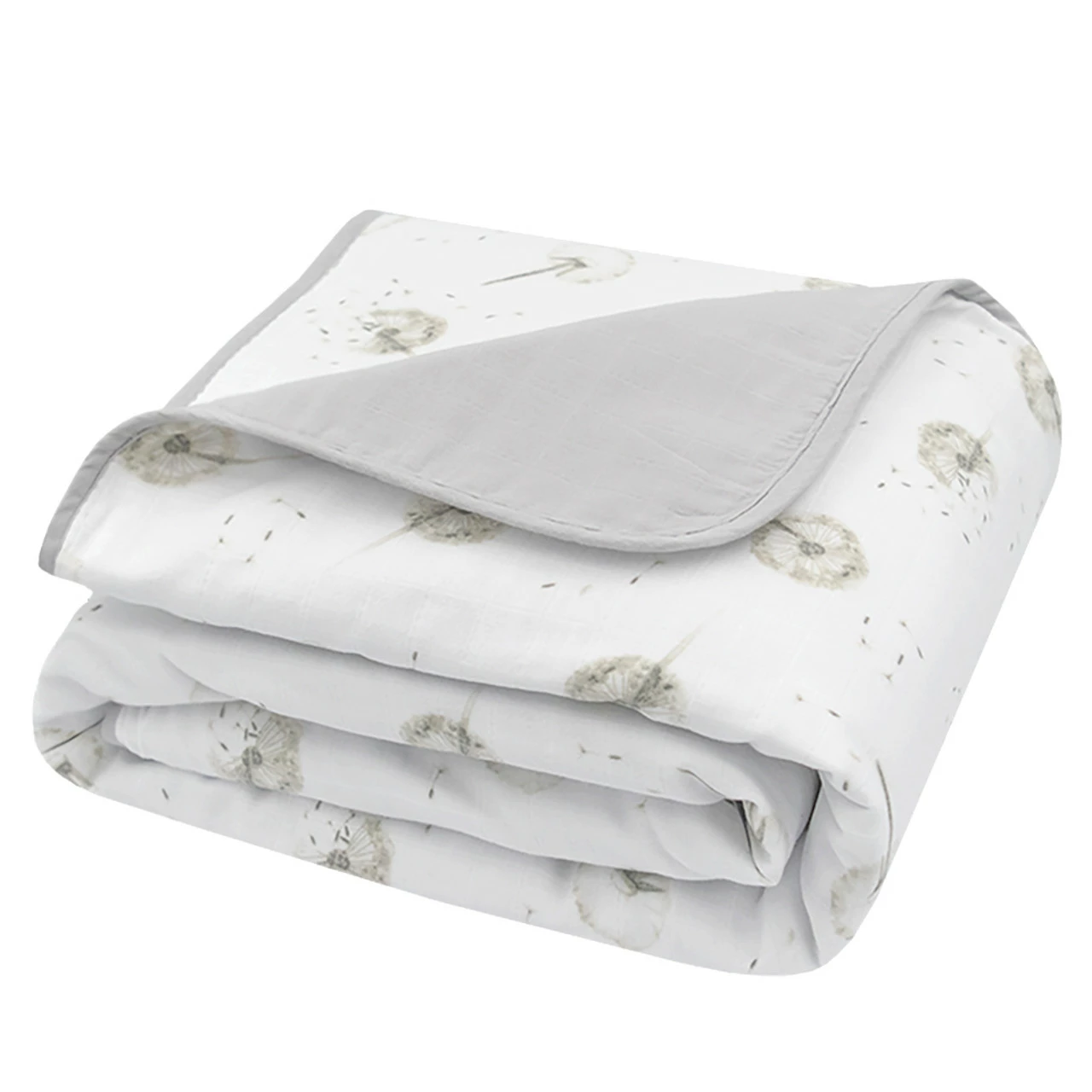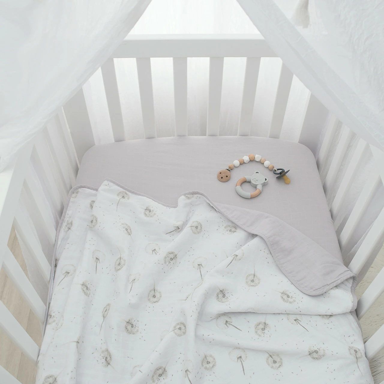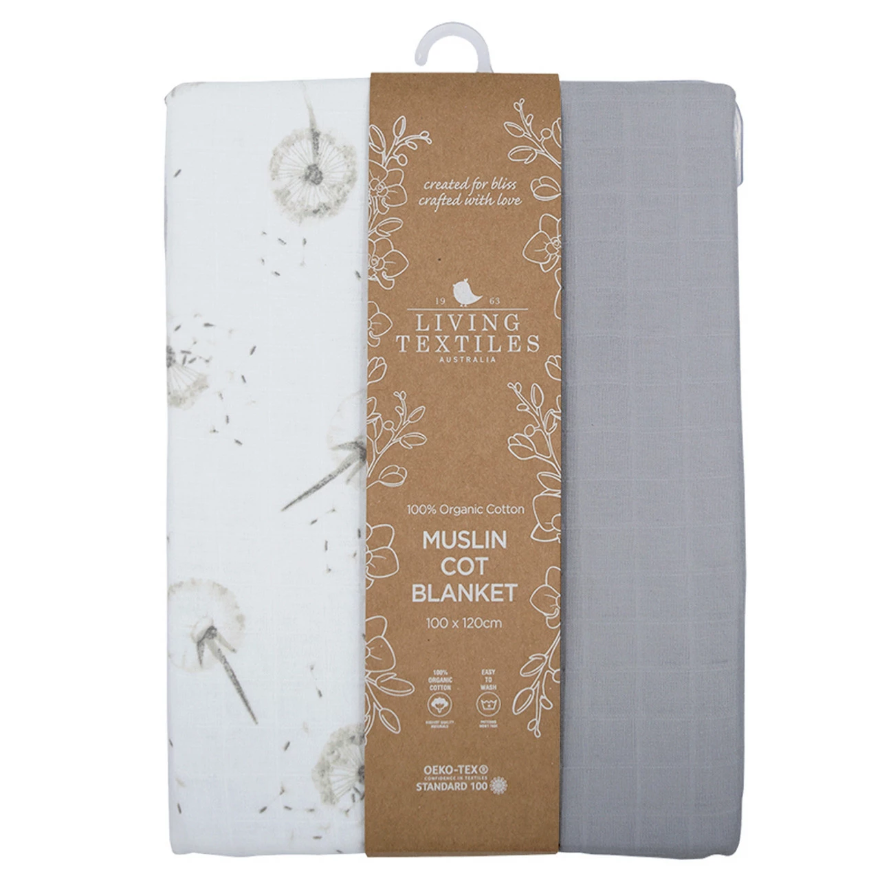 This luxurious organic baby blanket is lightweight and breathable making is perfect for year- round use. Crafted from 6 layers of soft and silky 100% organic cotton muslin its feature a reversible design so you can mix and match. Generously sized, this blanket is perfect in the cot, bed or even snuggling on the sofa. Match back with other items in the Living Textiles Dandelion Collection to create the nursery of your dreams.