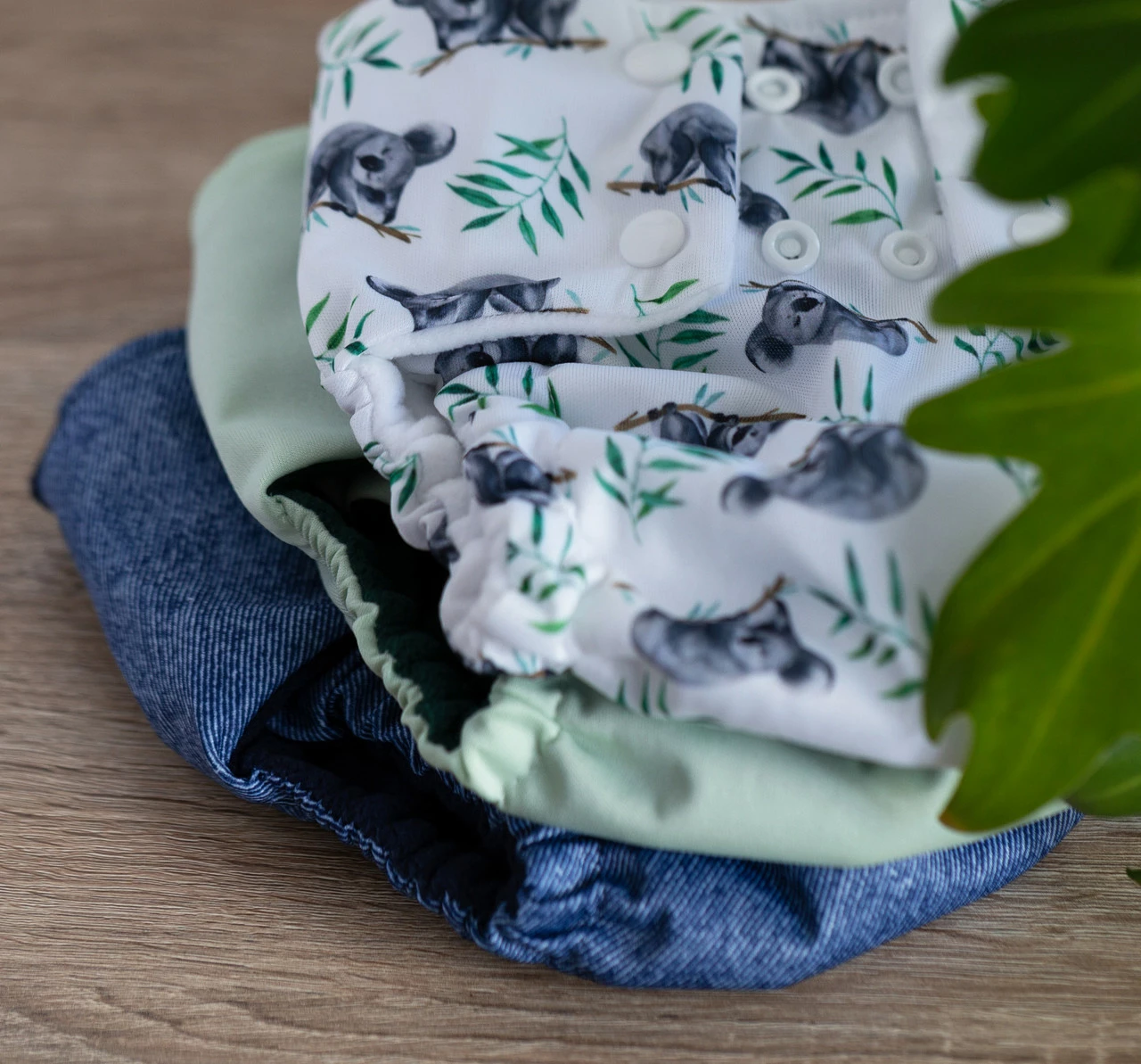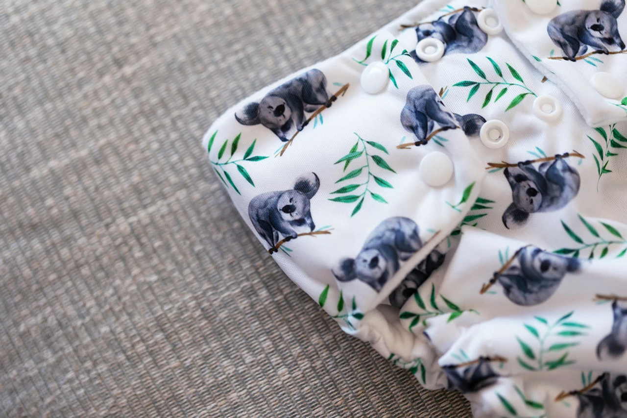 2. Snap bamboo absorber into place with stay-dry panel against baby’s skin (can also be used “pocket style”).