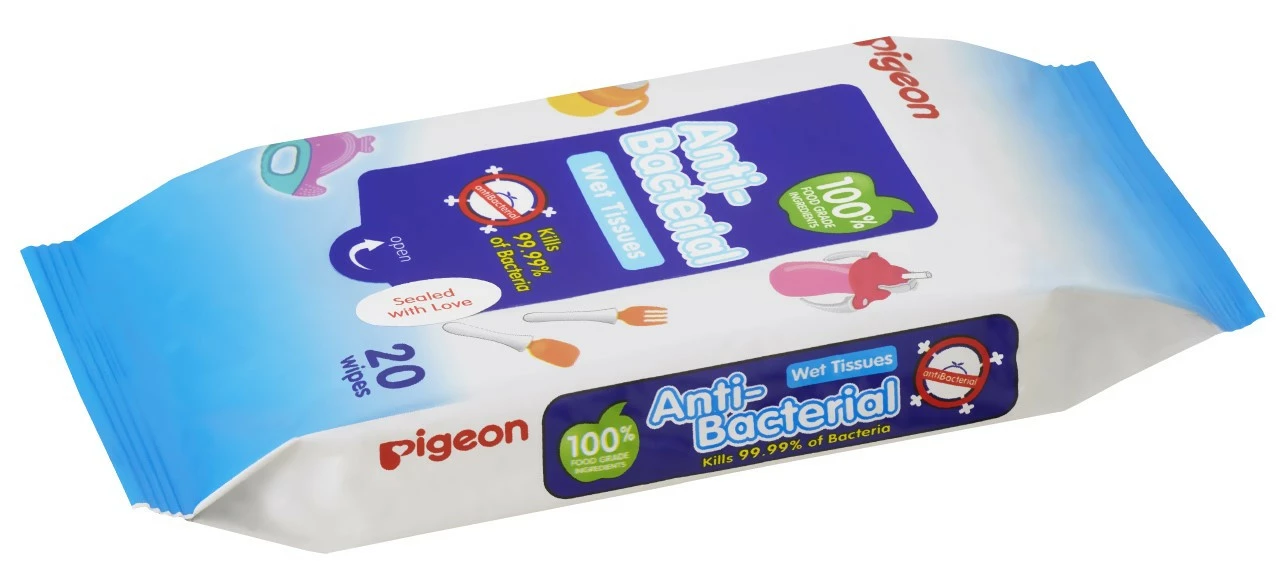Pigeon Anti Bacterial Wipes are made from 100% food grade ingredients and effectively kill 99% of bacteria.