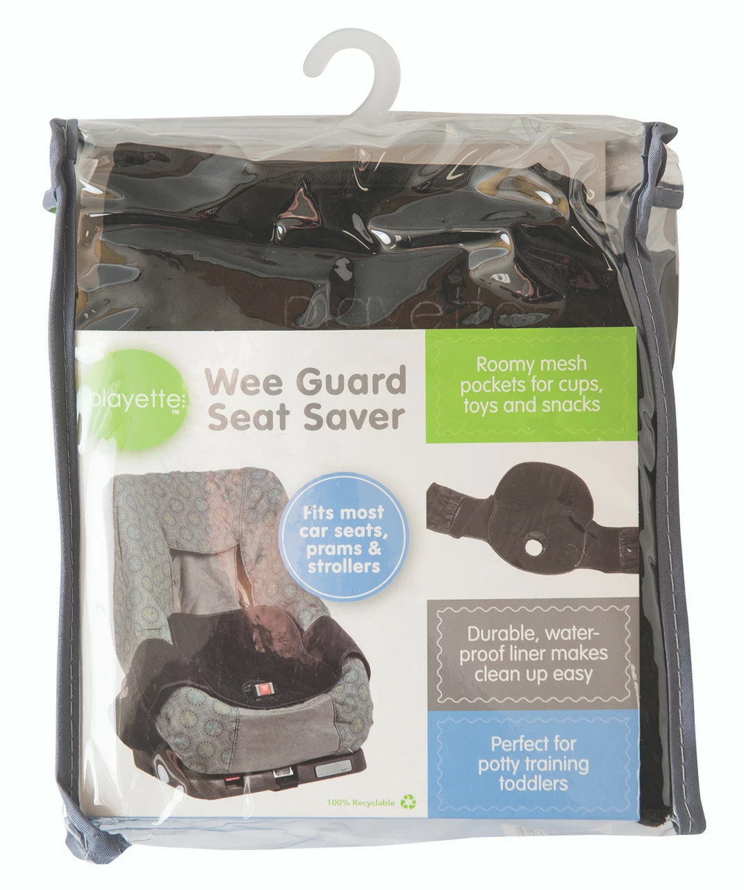 Playettes durable, accident-proof seat saver protects car seats and strollers from messy nappy leaks, spills and stains. Handwash or Wipe with damp cloth, easy to clean and waterproof. Features detachable mesh pockets to hold cups, toys and snacks.