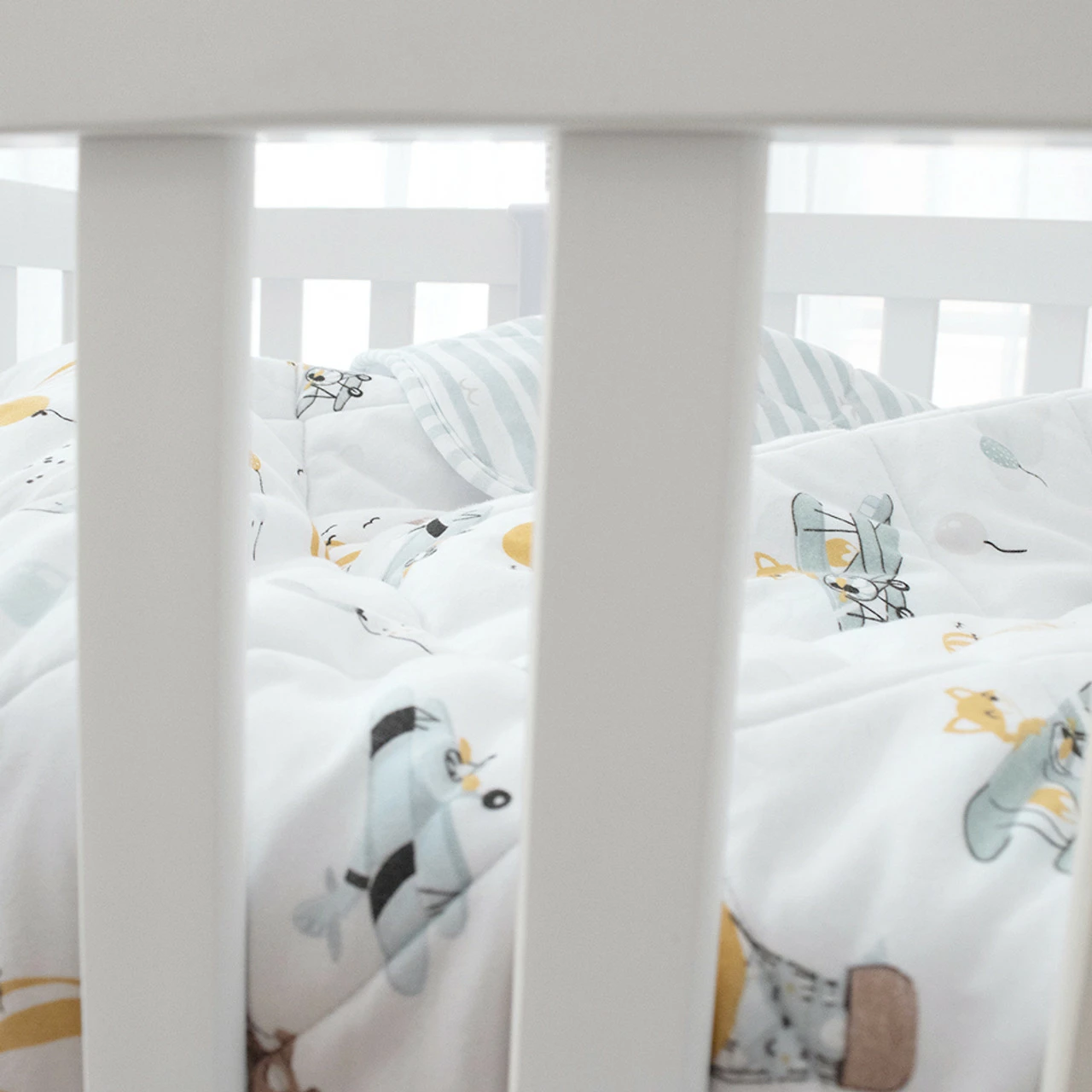 This generously sized, luxurious cot comforter from is made from soft and breathable 100% cotton jersey. Featuring a reversible design with diamond quilting, this lightweight yet breathable comforter is perfect for year-round use.