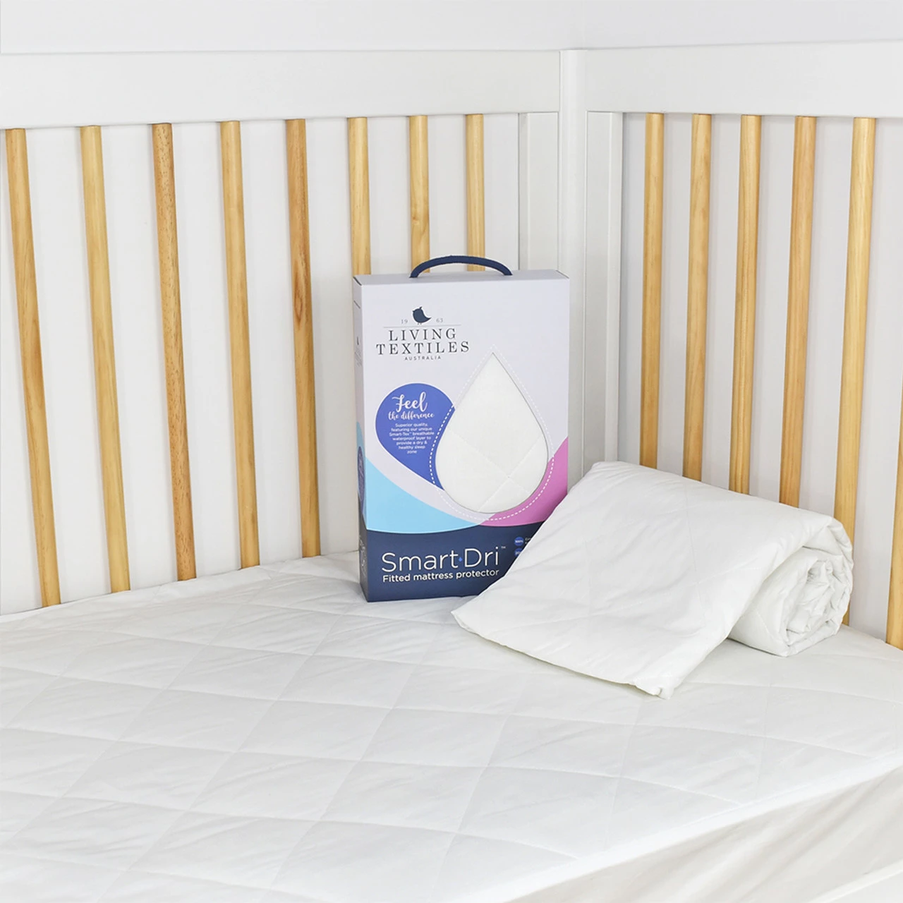 Unprotected mattresses create the perfect breeding ground for bacteria and dust mites, a major exacerbating cause of eczema and allergies. Protect your little one and their mattress with the Living Textiles Smart- Dri mattress protector – the smart choice for every parent.