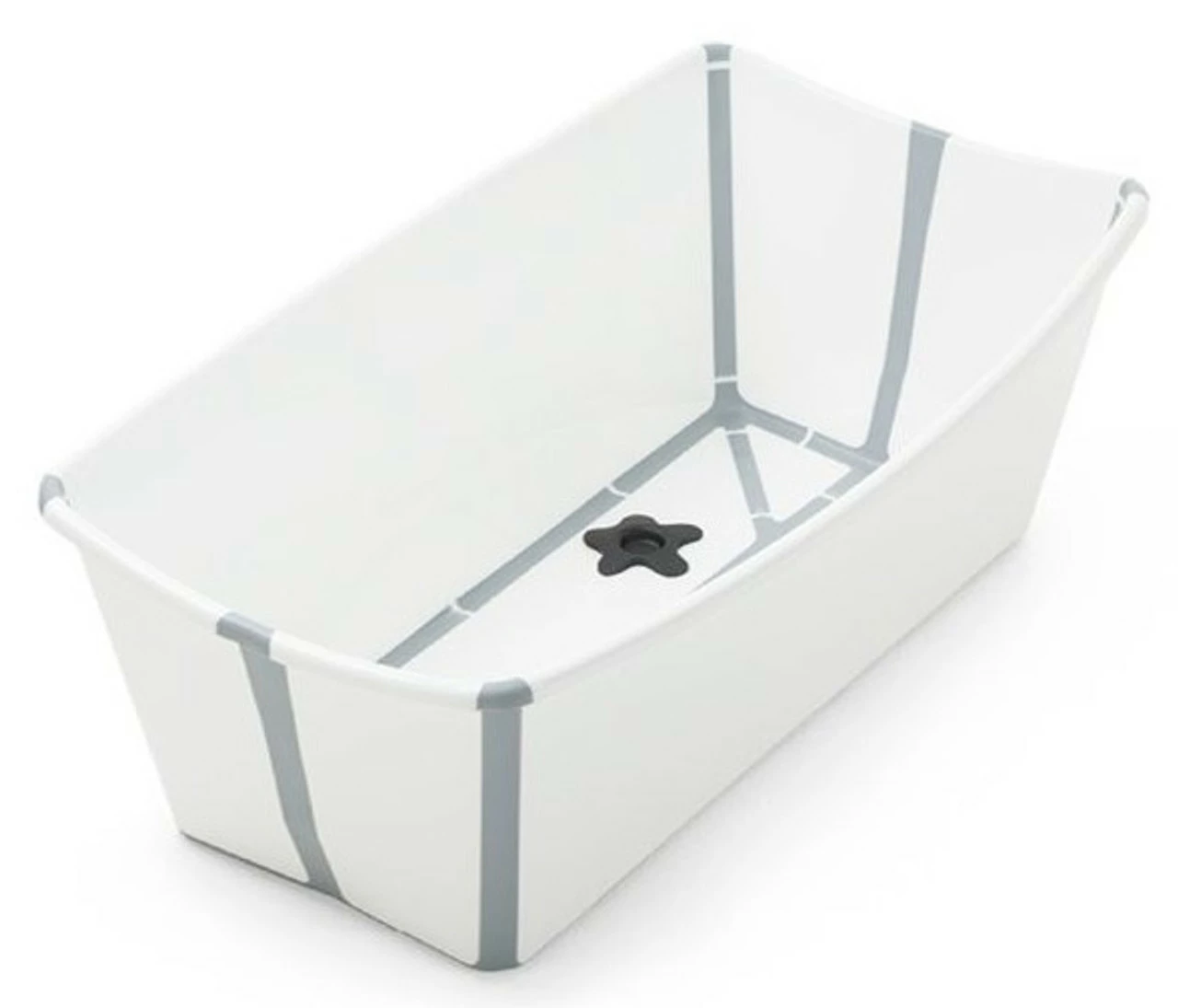 Stokke® Flexi Bath® is a foldable baby bath suitable from birth to four years. The space saving design makes it easy to store and convenient to use at home or when traveling, encouraging more shared bath time moments. The optional Stokke® Flexi Bath® Newborn Support provides additional comfort for newborn babies. Because Stokke are always striving to improve our products, we´re offering a heat sensitive drain plug.The plug works by turning colors, when the water gets warm giving parents a visual cue, letting them know that the water temperature is getting needs to be checked. Please note that the plug is not a thermometer. Always double-check the water temperature with your hand to ensure that it is the right temperature for your baby´s comfort and safety. If you are in any doubt, use a reliable thermometer for accuracy.