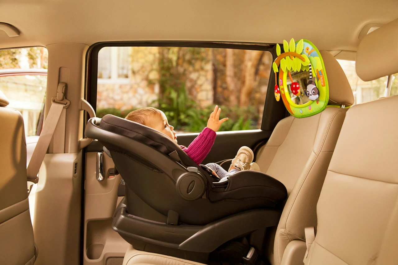 On the go? Check in on your little cutie while you drive and keep them smiling, no batteries required! The adorable animals on this crash-tested mirror swing side to side with the motion of your car to keep baby happy. And the Clear-Sight™ mirror gives you a clear, distortion-free view of what’s happening in the back with just a glance in your rear-view mirror. A smile here, a giggle there, and your time spent on the road gets just a little bit better.