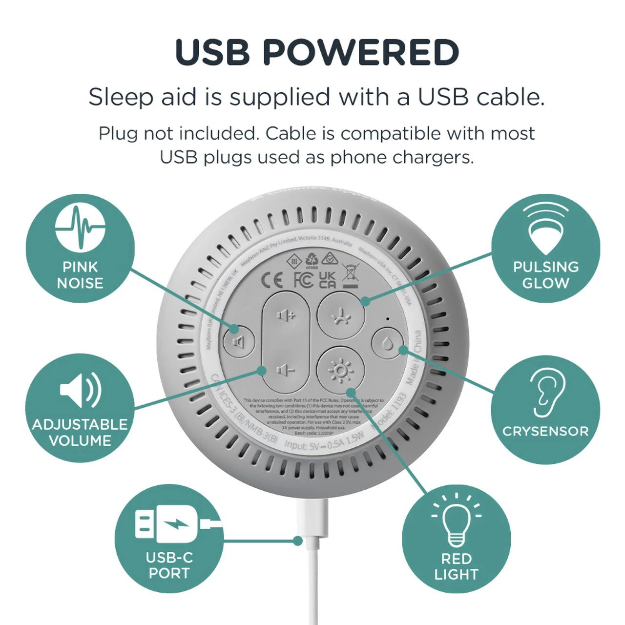 The Dreammaker is a scientifically proven sound and light sleep aid that helps baby to sleep better by simulating ideal sleep conditions, rather than stimulating baby. Developed with a world-leading sleep laboratory and sleep scientists at Northumbria University in the UK, this unique, patent-pending sleep aid relaxes your baby, encourages them into a deep sleep and prolongs the length of their sleep. A very quiet sleep environment is unfamiliar to babies and may make it harder for them to fall asleep. This innovative sleep aid for children features pink noise which mimics the sounds of natural noises which baby hears all day and thereby provides baby with a sense of calm and comfort. Incorporating pink noise provides a comforting background noise which aids in falling asleep faster, deeper and for longer. Melatonin (the sleep hormone) is a naturally occurring hormone that your body produces in response to darkness and helps to control your sleep cycles. Exposure to light can supress the secretion of melatonin and delay the onset of sleep. Research has shown that compared to exposure to other lights on the spectrum, red light exposure has little to no effect on melatonin suppression. Our research has shown that a baby sleep solution that incorporates red light could help baby get to sleep faster, sleep longer through the night, and be minimally stimulating during night-time awakenings, making re-settling easier. Use as a nightlight when breastfeeding or bottle feeding during the night to keep disturbance to a minimum. Choose from 3 brightness levels to provide a comforting and relaxing glow that won’t disturb baby (or you) once asleep. The rhythmical pulsing light waves encourage slow, deep breaths to relax the user ready for sleep. The first, faster pulse setting reflects baby’s resting breathing rate, helping to induce sleep in infants. The second, slower pulse mimics your resting breathing rate, helping you to drift off! The scientific way to better sleep: Developed with sleep scientists, this sound and light sleep aid relaxes your baby, encourages them into a deep sleep and prolongs the length of their sleep Pink noise: Mimics the natural sounds of the womb and encourages baby to fall asleep faster, deeper and for longer as it provides them with a comforting, familiar and more natural background noise Red light: The soothing red light allows the production of melatonin, the sleep hormone, and is minimally stimulating so won’t disturb baby (or you) once asleep Pulsing glow: The rhythmical pulses of soft light mimic the slow, deep breaths of baby’s relaxed breathing rate which calms baby and helps them to drift off to sleep Intelligent CrySensor technology: The integrated CrySensor listens out for baby’s cries during the night and automatically turns the device back on to soothe baby back to sleep USB rechargeable. No Batteries required, includes USB charger cable (excludes adaptor plug)