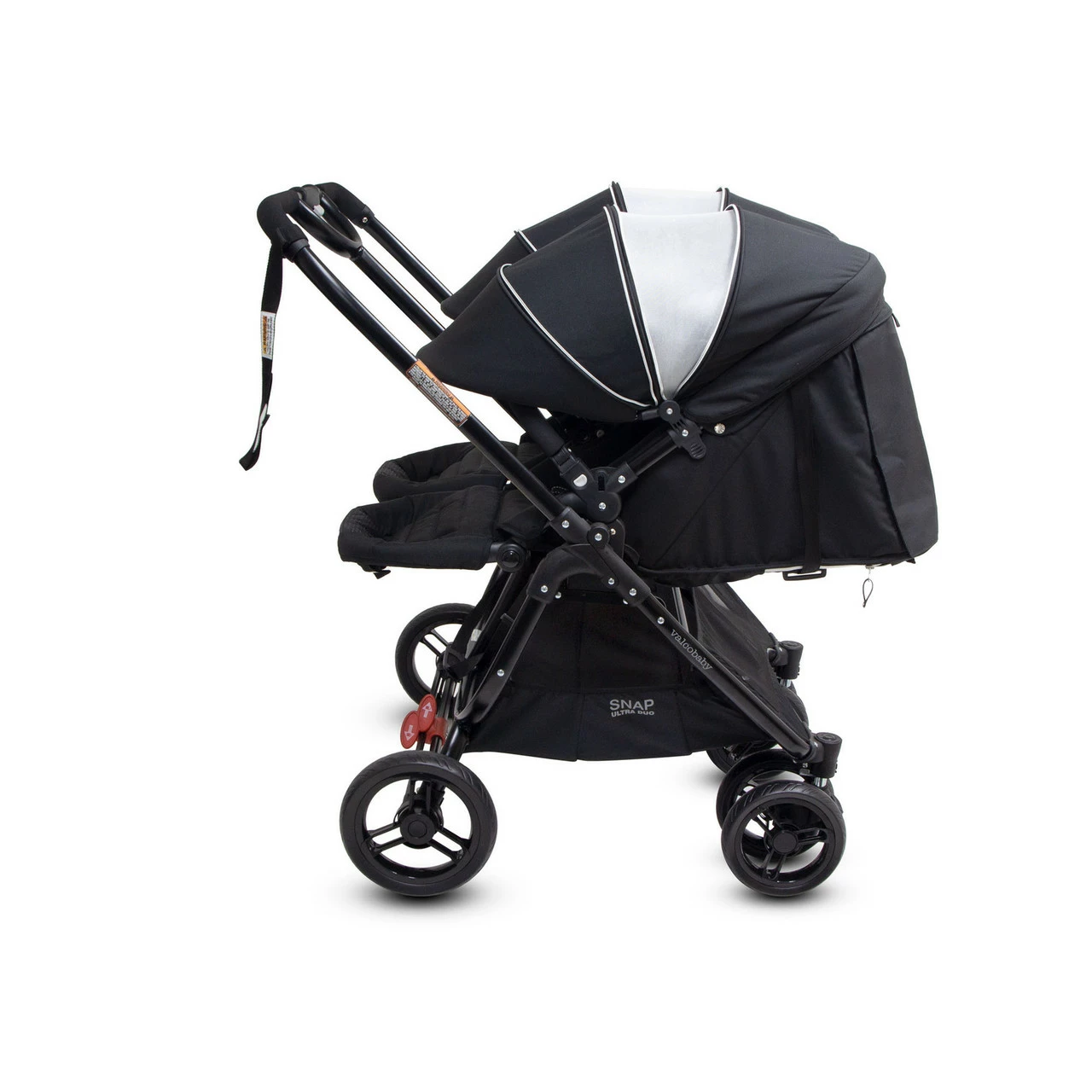 With so many configurations available right out of the box, the Snap Ultra Duo Coal Black is the most flexible side by side stroller available on the market at an affordable price. Newborn or toddler, your children will sit or sleep in equal comfort while the large wheels and lightweight yet robust construction, provides bub with a smooth and effortless ride. Featuring: Independent/Removable seats Multiple configurations Infinite Belt Recline Bassinet & Car Capsule compatible