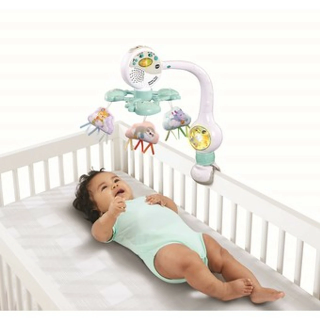 Send your little one to dreamland, on-the-go! The Sleepy Time Travel Mobile by VTech is a wonderful mobile for babies on-the-go. Featuring twirling dream clouds, a glow light and soothing music, this mobile will send your baby into a peaceful slumber. This compact mobile easily attaches to most cots, prams and baby carriers.