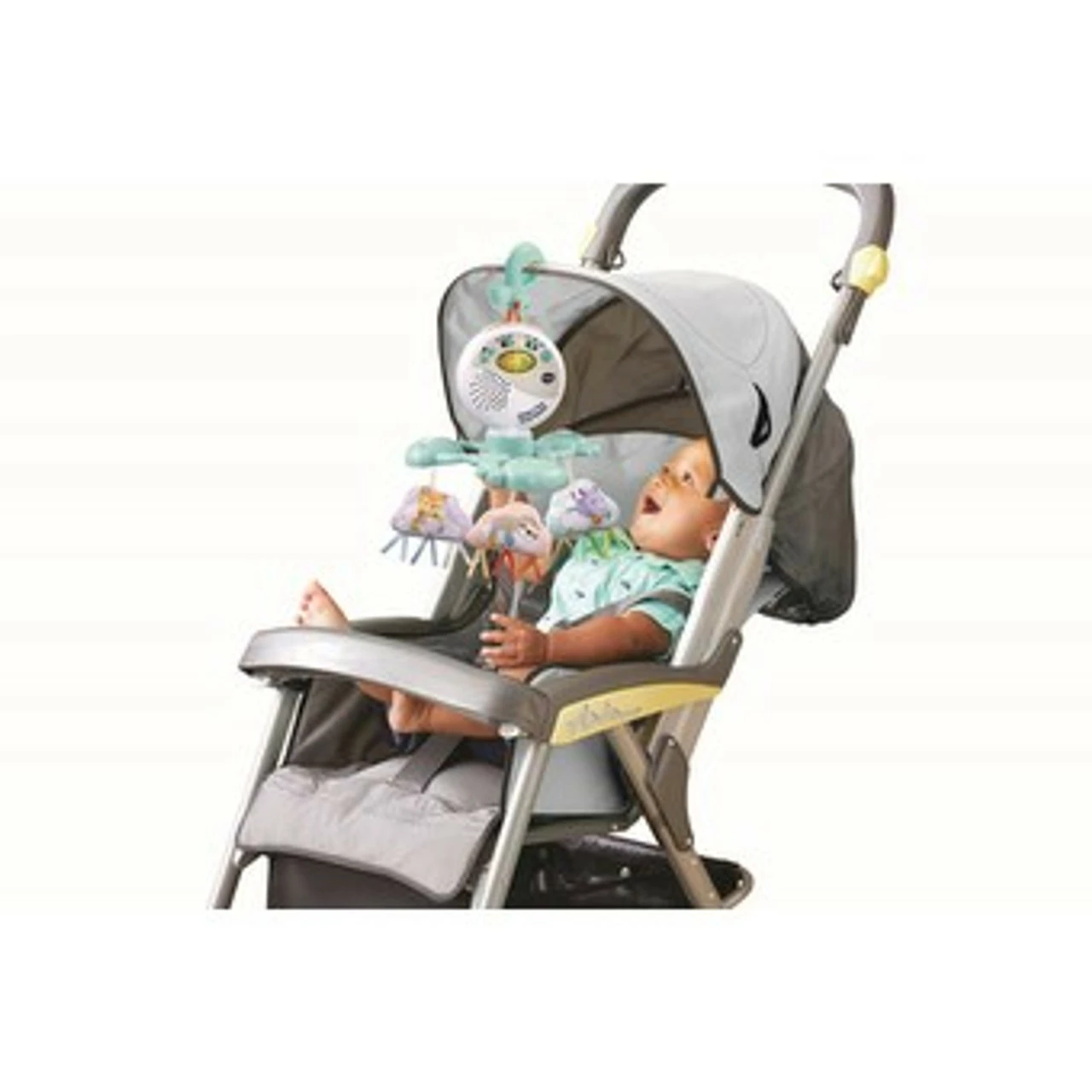 - Claw fastener attaches the mobile to prams and baby carrriers for on-the-go play
