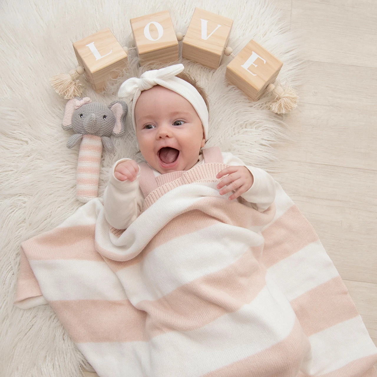 Crafted from 100% cotton knit, this classic stripe blanket is lightweight and breathable. Perfectly sized for the pram and bassinet, this blanket is machine washable and tumble dry safe, making it perfect for everyday use.