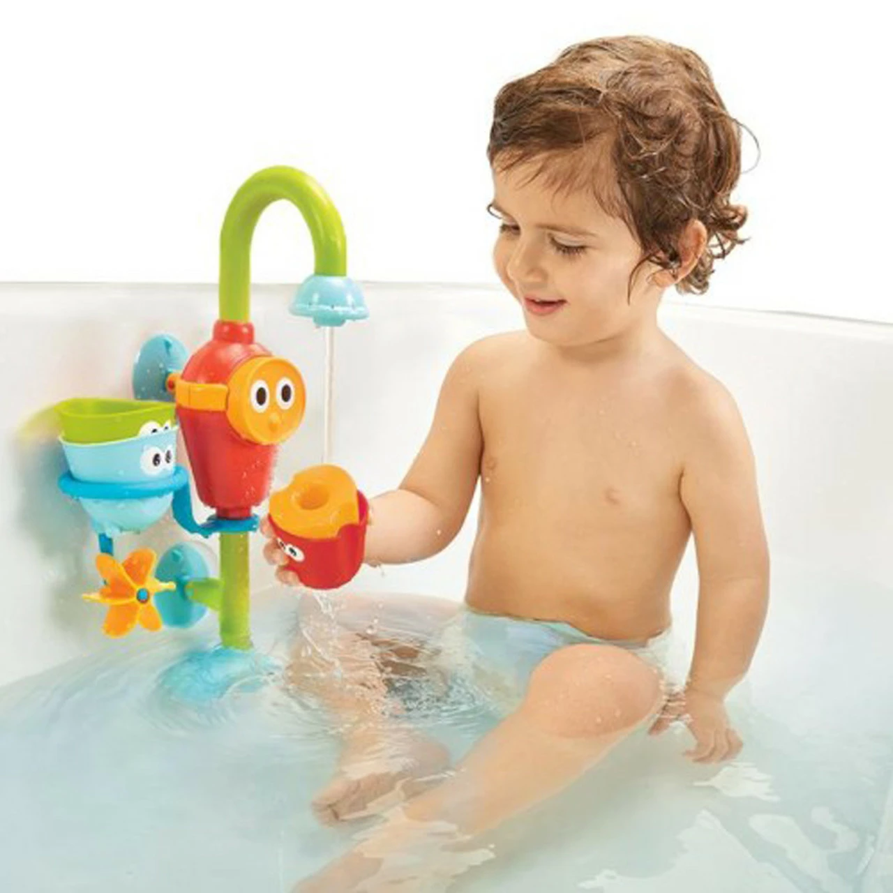 This award winning spout makes bath-time the highlight of the day! Complete with stackable tumblers that spin, spray, and sprinkle without wasting water, it entertains and captivates your child’s imagination as they get clean. Features: Get ready for a spout full of fun by easily attaching the battery-operated Flow N’ Fill Spout to the side of the tub with the blue pump suspended in the bath water. Designed especially for budding gross motor skills, press on the large, silly-eyed diver button to start the flow of water and hours of fun in the tub. Place each of the three bath tumblers under the stream to experience their different straining and spraying effects. Stack the tumblers and watch with delight as the water runs through them all.