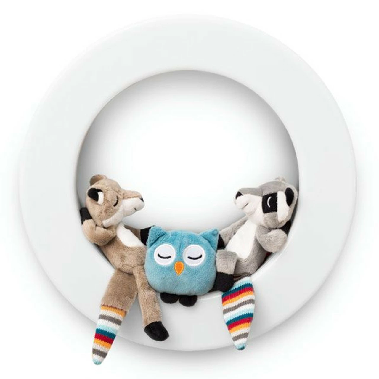 The ZAZU Wall Light is a rechargeable wall light with 3 magnetic plush toys Fay the Fox, Rex the Racoon and Otis the Owl that can click onto the wall light.